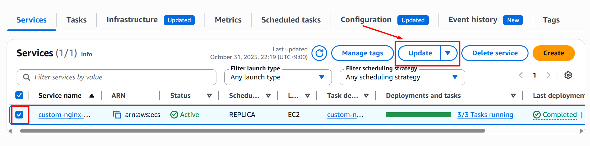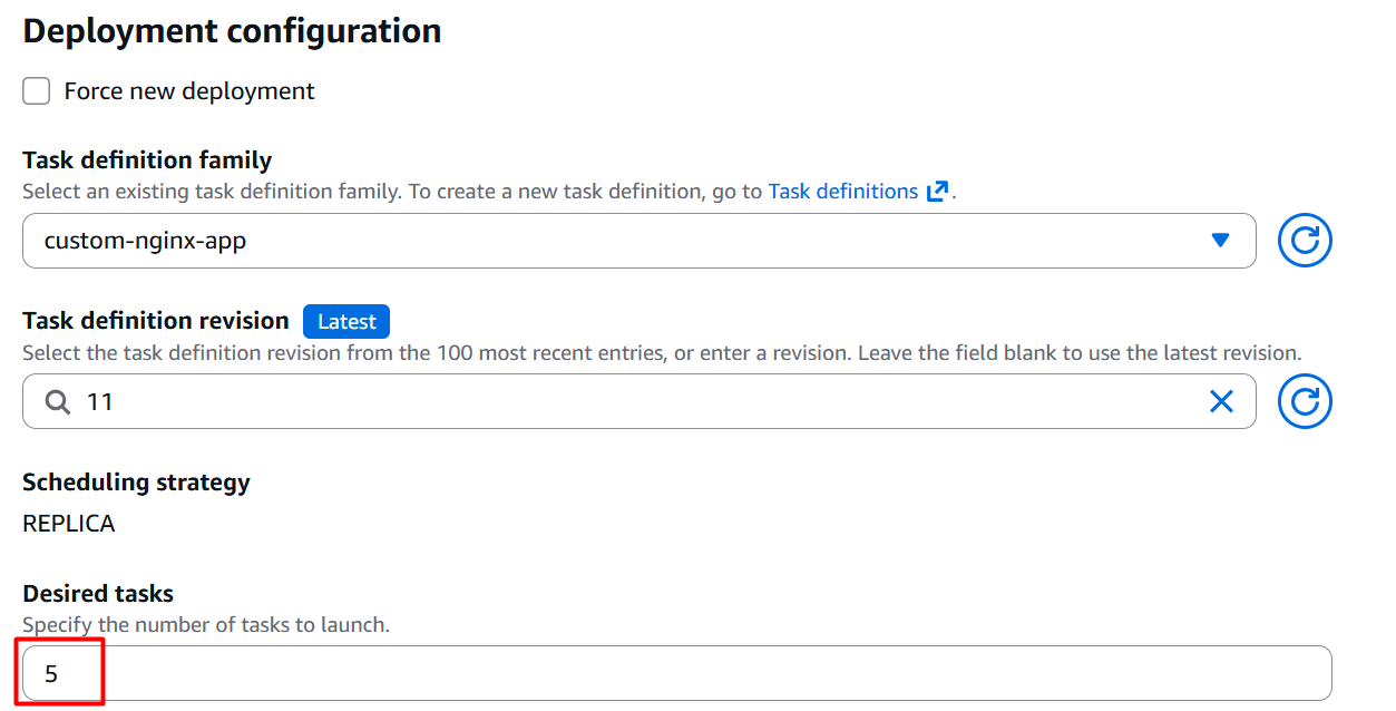 Quá trình Deployment rolling update sẽ diễn ra bằng cách tạo ra task mới và stop task cũ.