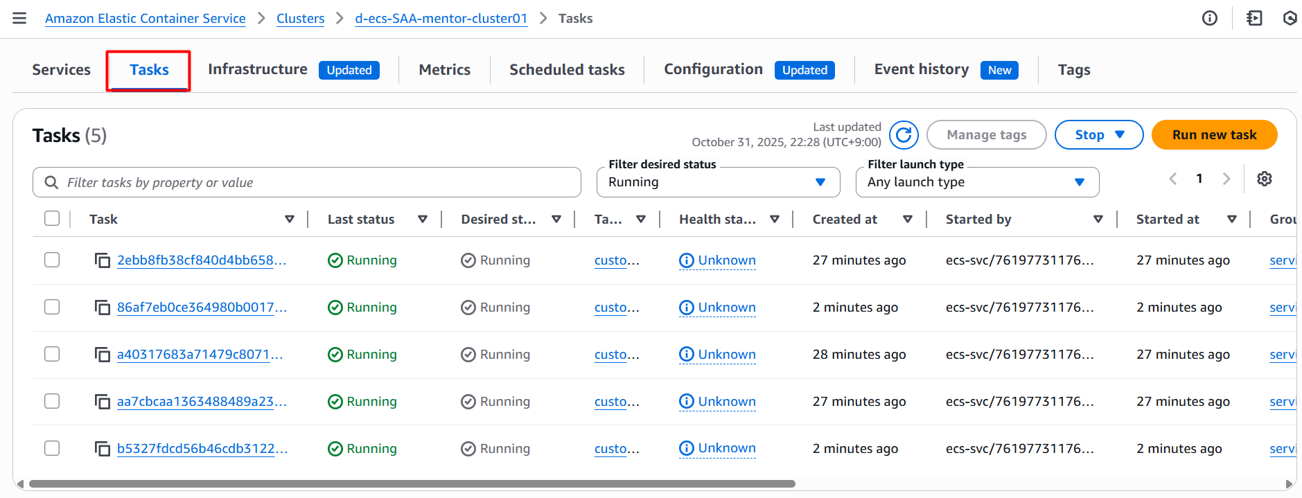 d-ecs-SAA-{yourname}-cluster01 - Tại tab Services -> Create