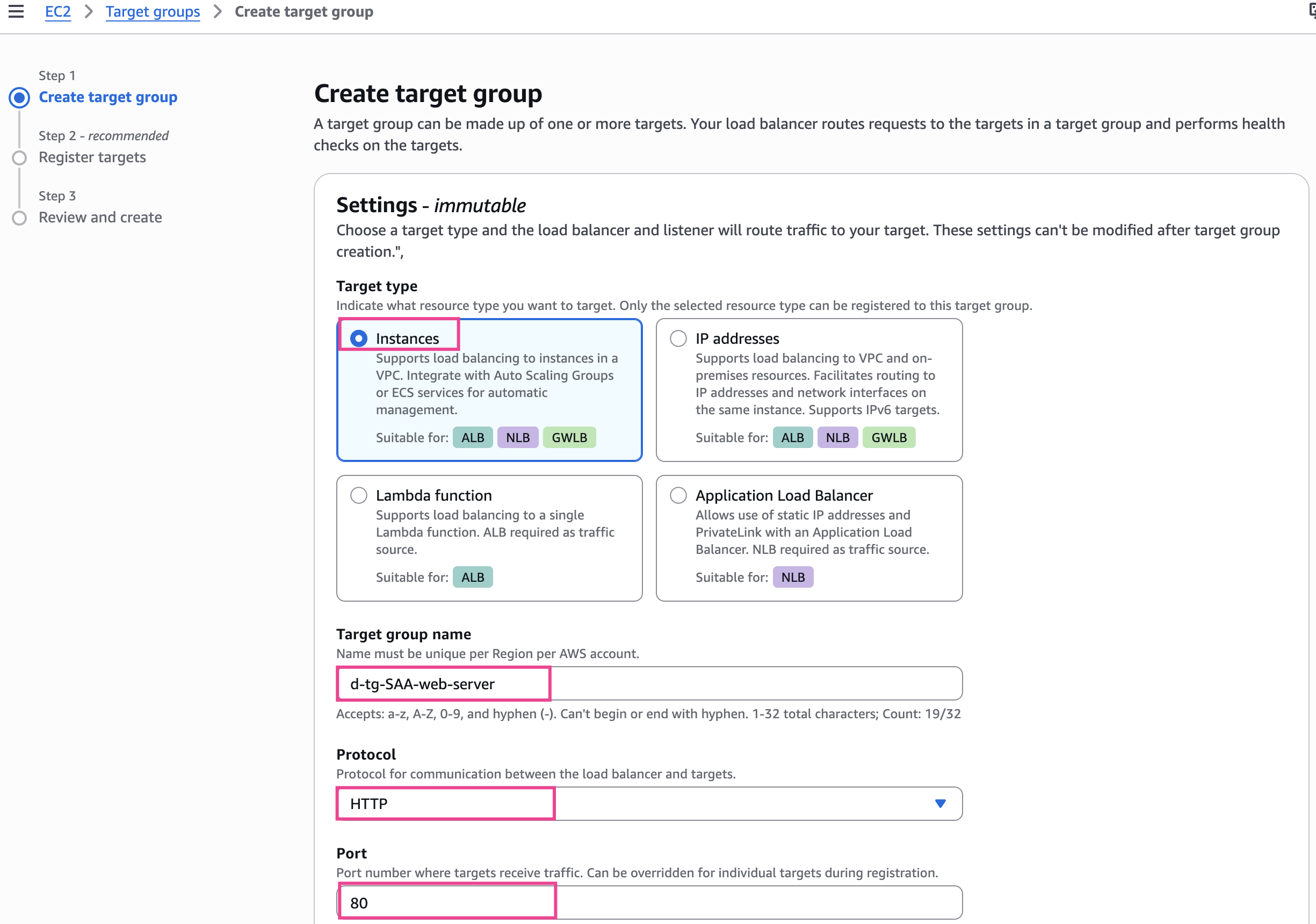 Instances - Target group name: