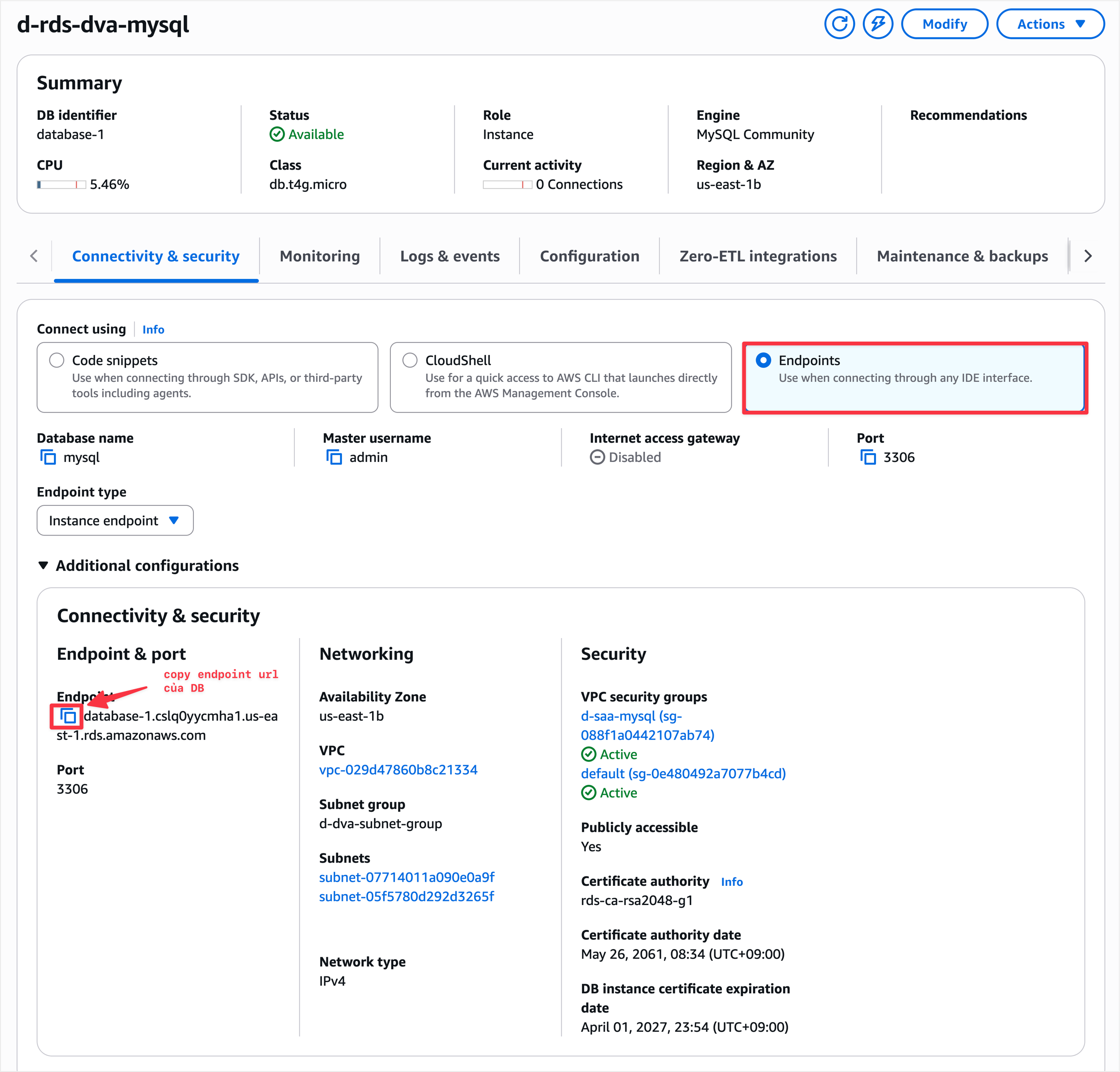 Bài viết hướng dẫn cách tạo RDS for MySQL và setting cần thiết để truy cập RDS Database từ local.