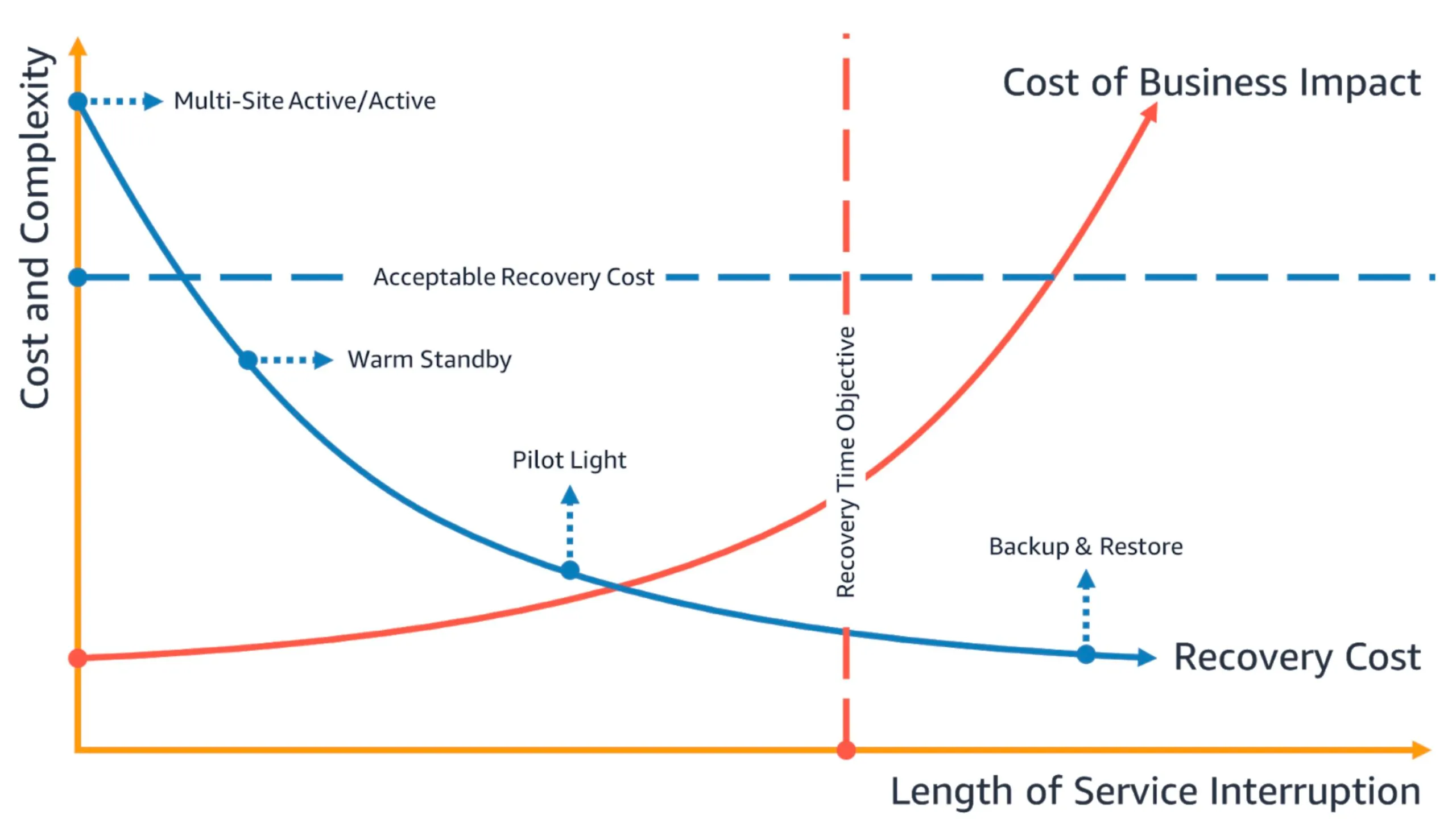 Quy tắc chung: RTO và RPO càng thấp → chi phí DR càng cao. Nhiệm vụ của architect là tìm điểm cân bằng hợp lý.