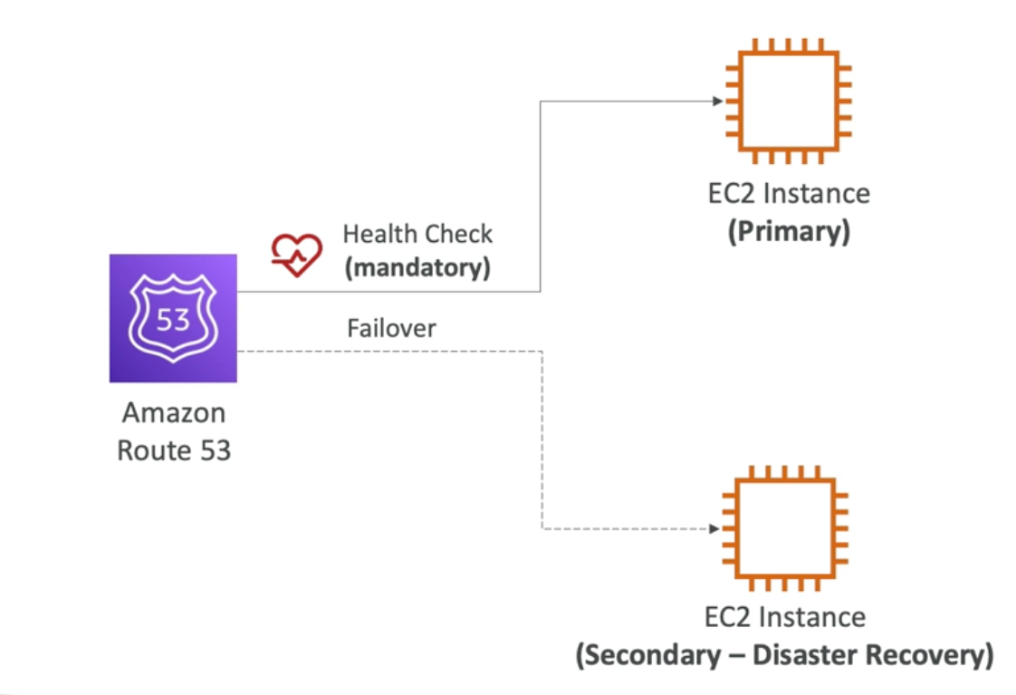 - Cấu hình DNS failover — khi health check fail, Route 53 tự động route traffic sang DR Region