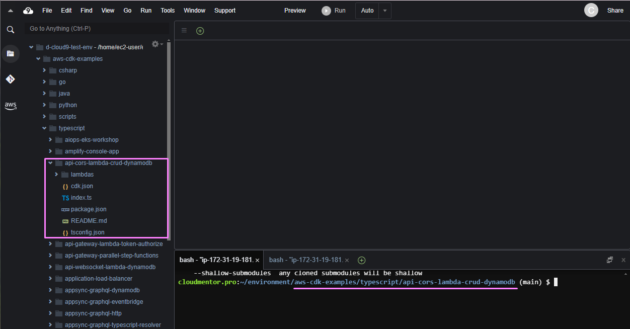 cd aws-cdk-examples/typescript/api-cors-lambda-crud-dynamodb/