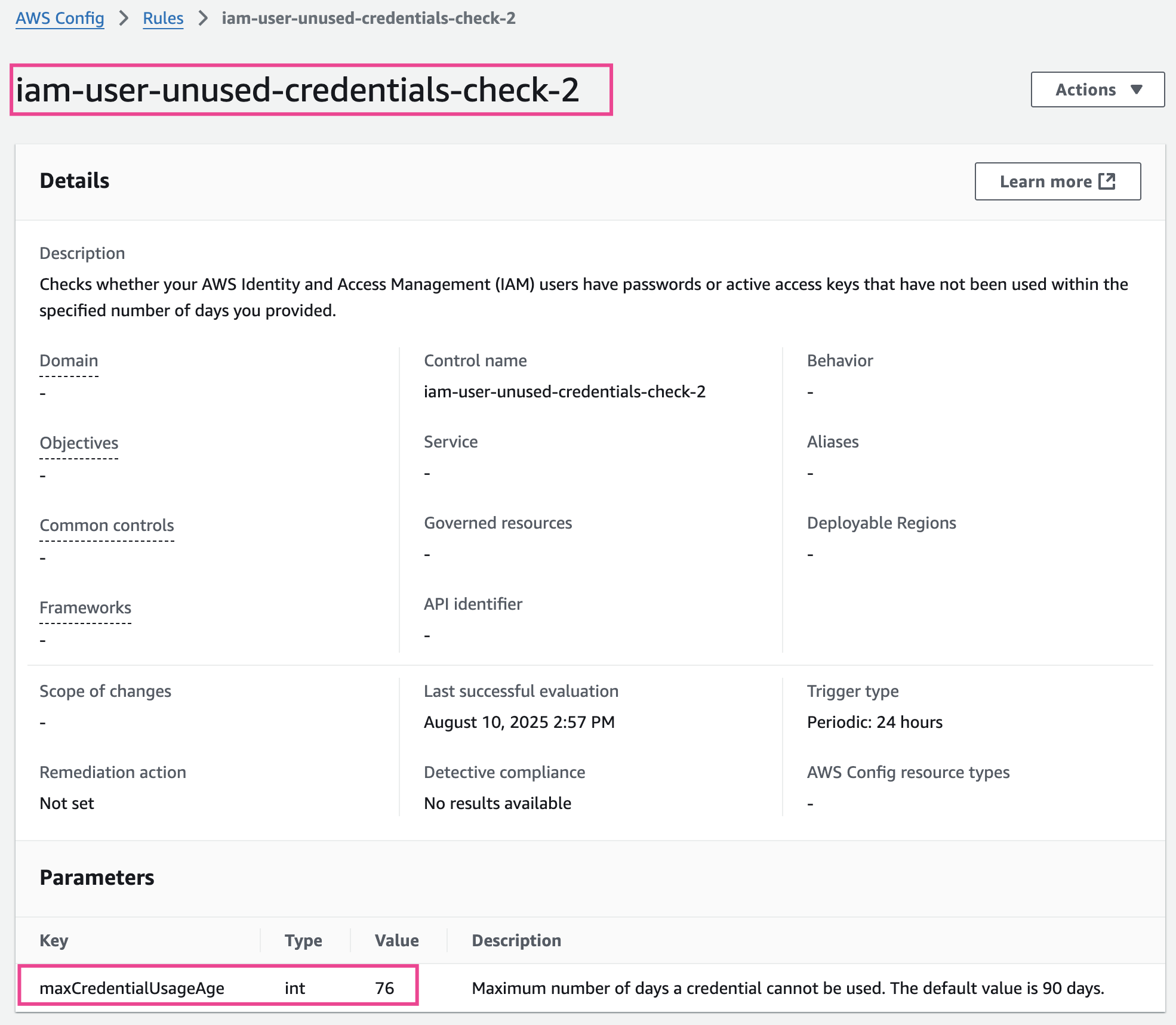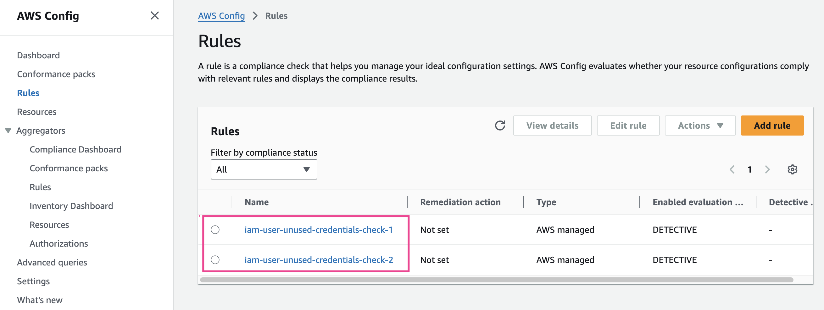 --config-rule-names "iam-user-unused-credentials-check-2" \