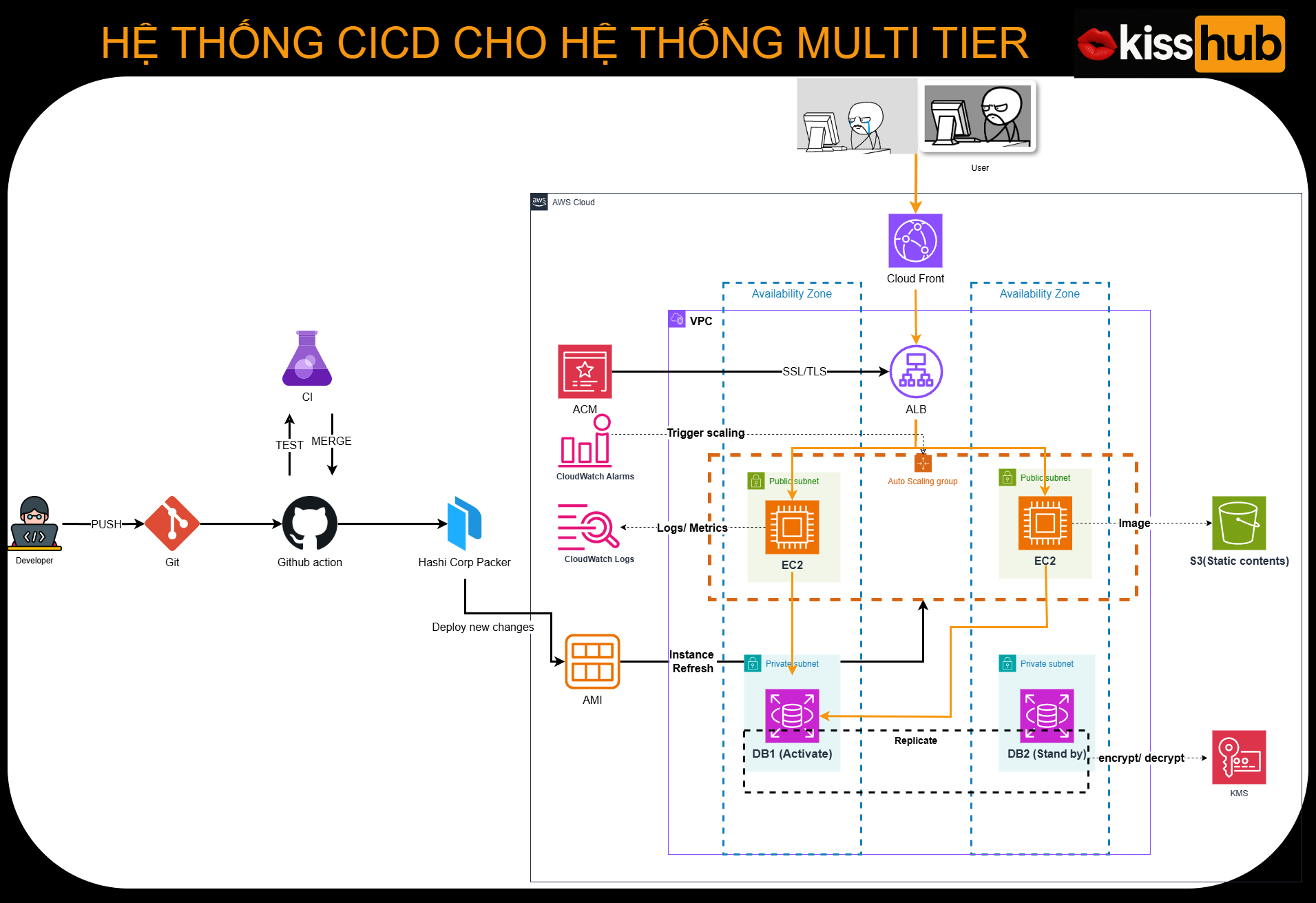 Với làn sóng chuyển đổi số, tích hợp cloud , ban giám đốc và CTO của công ty đã quyết định migration infrastructure của sản phẩm "KissHub" từ onpremise lên AWS, đội của Long nhận nhiệm vụ xây dựng CICD mới cho hệ thống. Đang đắm mình trong niềm vui , Long nghe tin như sét đánh giữa trời quang , tâm thần chao đảo trước biến cố bất ngờ. Tuy vậy, không hổ là thợ code lâu năm, Long đã sốc lại tinh thần đề nhận nhiệm vụ được giao.