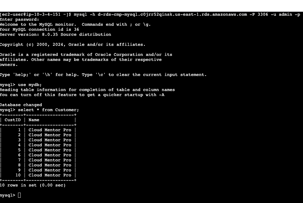 Chúng ta cũng có thể thao tác với DB ở EC2 thông qua command