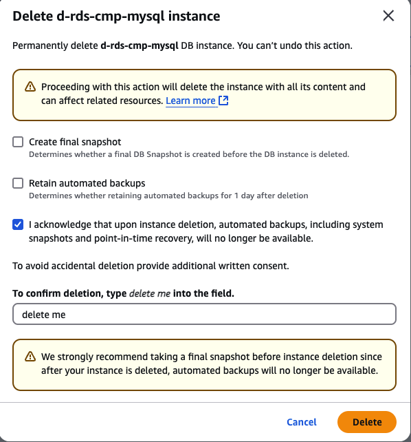 d-rds-cmp-mysql instancekhông giữ lại snapshot hay backup gì cả