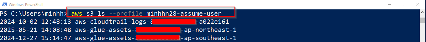 Thực hiện câu lệnh dưới đây để tạo AWS Temporary Credentials với "Vai trò Ủy thác" - Assume Role