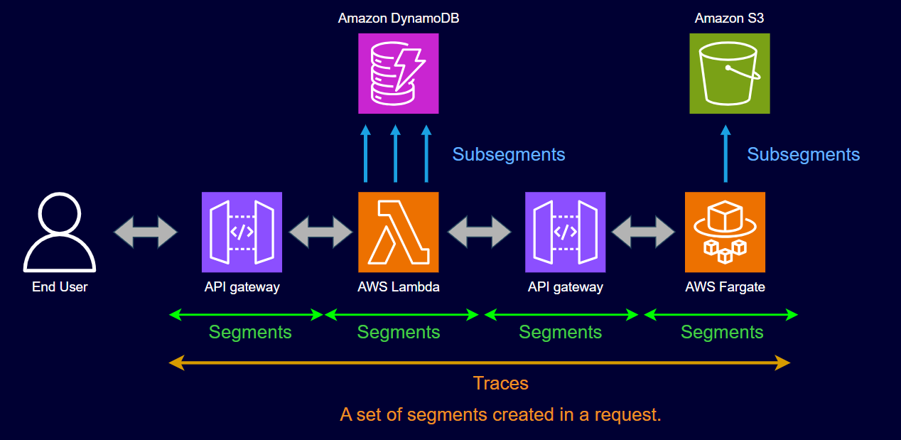 - Các Subsegments cung cấp thông tin chi tiết hơn về thời gian và chi tiết về các downstream calls (Ví dụ trên là các call đến DynamoDB hoặc S3) mà ứng dụng của bạn đã thực hiện để đáp ứng request ban đầu.