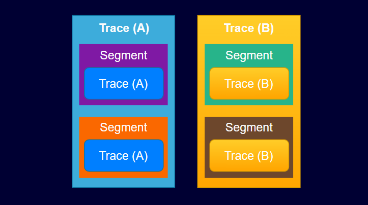 - Trace quản lý nhiều segments dựa vào TraceID. Mỗi segments sẽ có 1 TraceID.