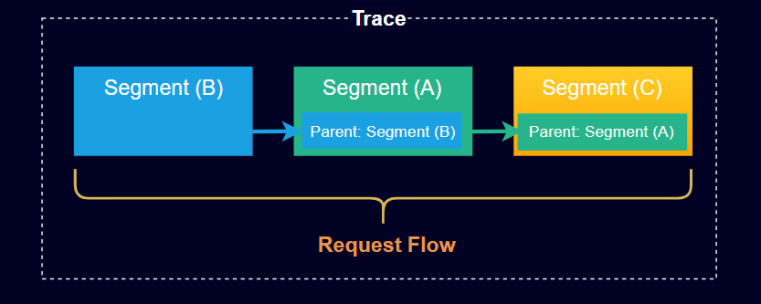 - SegmentID là duy nhất cho một segment trong trace. Root SegmentID xác định kết nối và thứ tự của các segment.