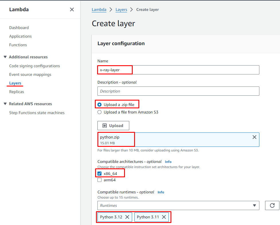 Tải về file python.zip tại đây (đây chính là Layer chứa thư viện X-Ray và requests)
