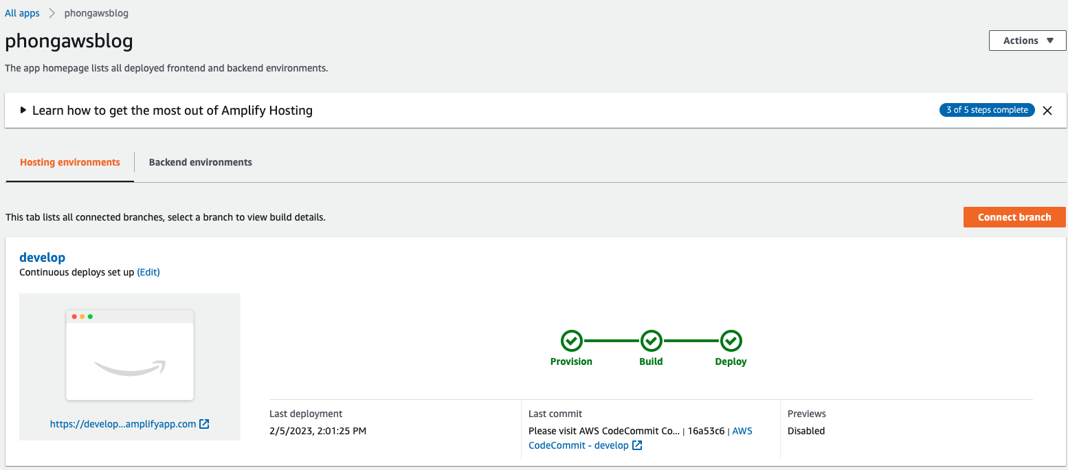 Vậy là chúng ta đã hoàn thành Deploy một hugo blog sử dụng Amplify, sau mỗi lần push code lên branch đã liên kết với Amplify, Amplify sẽ thực hiện tự động việc auto build cho chúng ta, việc của chúng ta bây giờ là suy nghĩ nội dung thật hay để xuất bản ra những blog chất lượng mà thôi :D