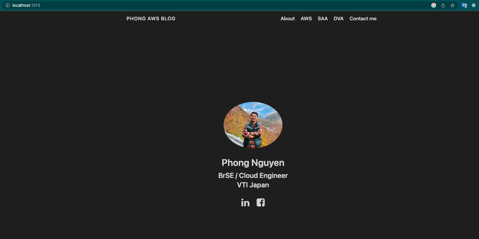 Tiếp đến thì copy nội dung file themes/hugo-coder/exampleSite/config.toml ghi đè nội dung file config.toml (ở root directtory) Run command bên dưới để build sitte và bạn sẽ thấy kết quả: http://localhost:1313/