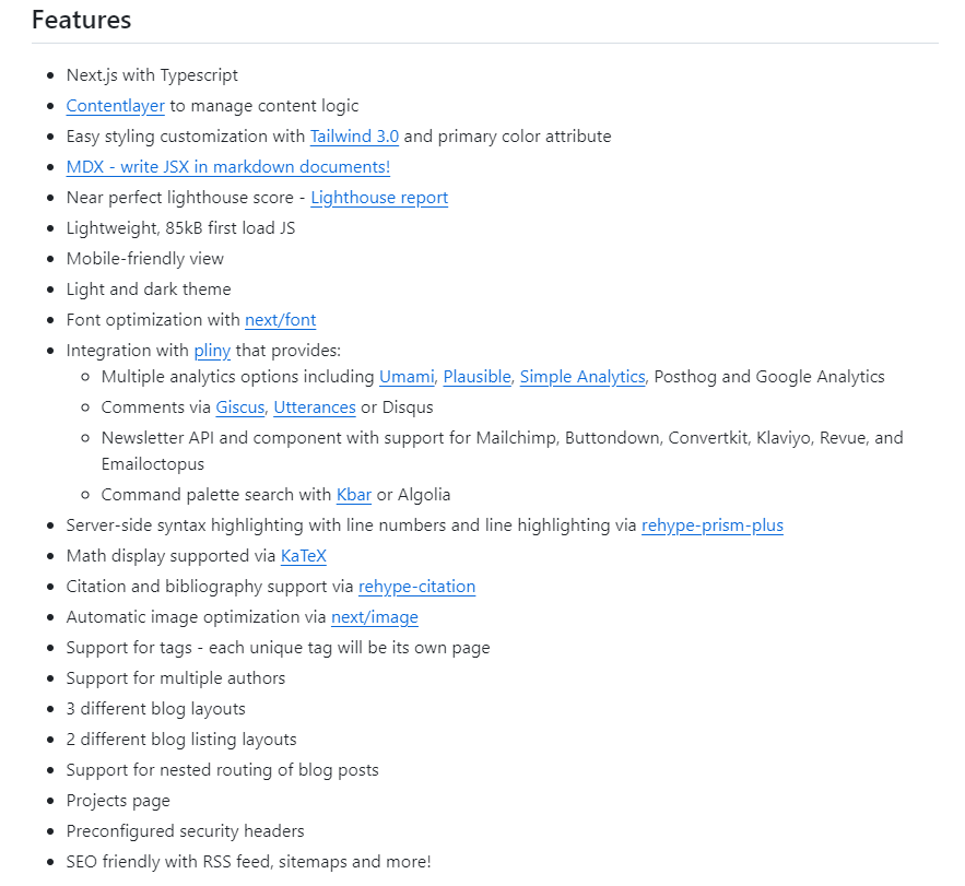 Theo cha đẻ của template tailwind-nextjs-starter-blog, Anh ta muốn xây dựng 1 blog với rất nhiều tính năng gần với các templates phổ biến biện tại như beautiful-jekyll và Hugo Academic nhưng với hệ sinh thái tốt nhất của React và các phương pháp hay nhất trong phát triển web hiện tại.
