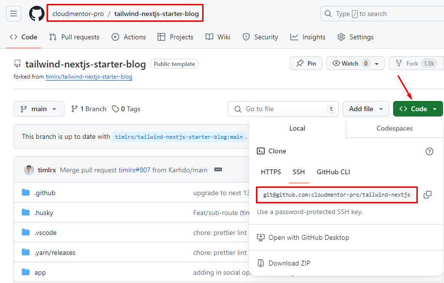 - Truy cập repository tailwind-nextjs-starter-blog