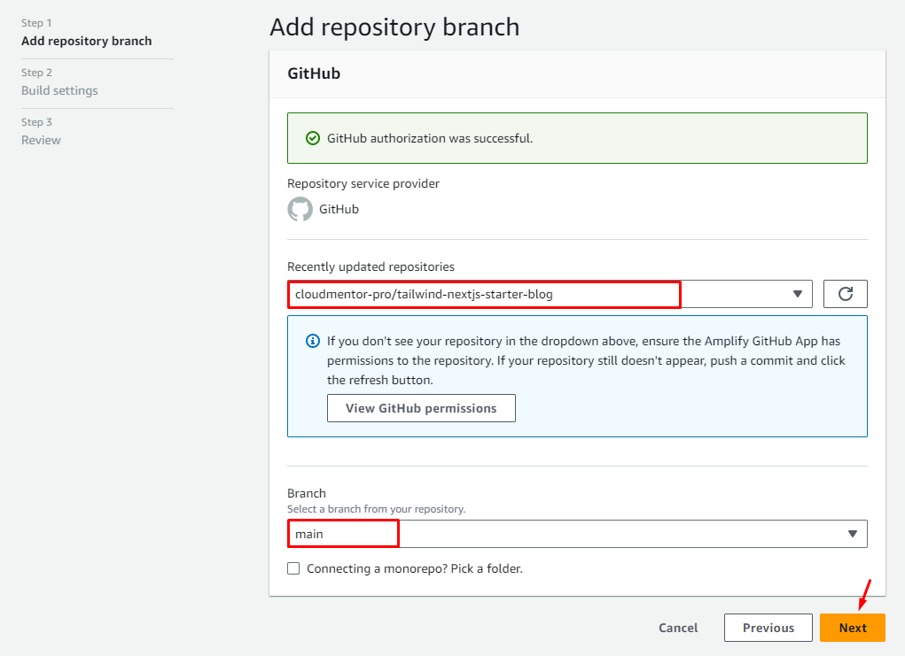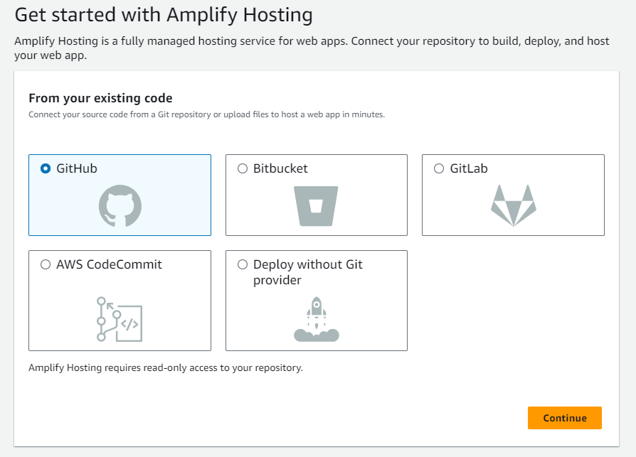 - Sau khi Amplify có quyền truy cập Github chúng ta thực hiện lại bước kết nối