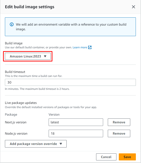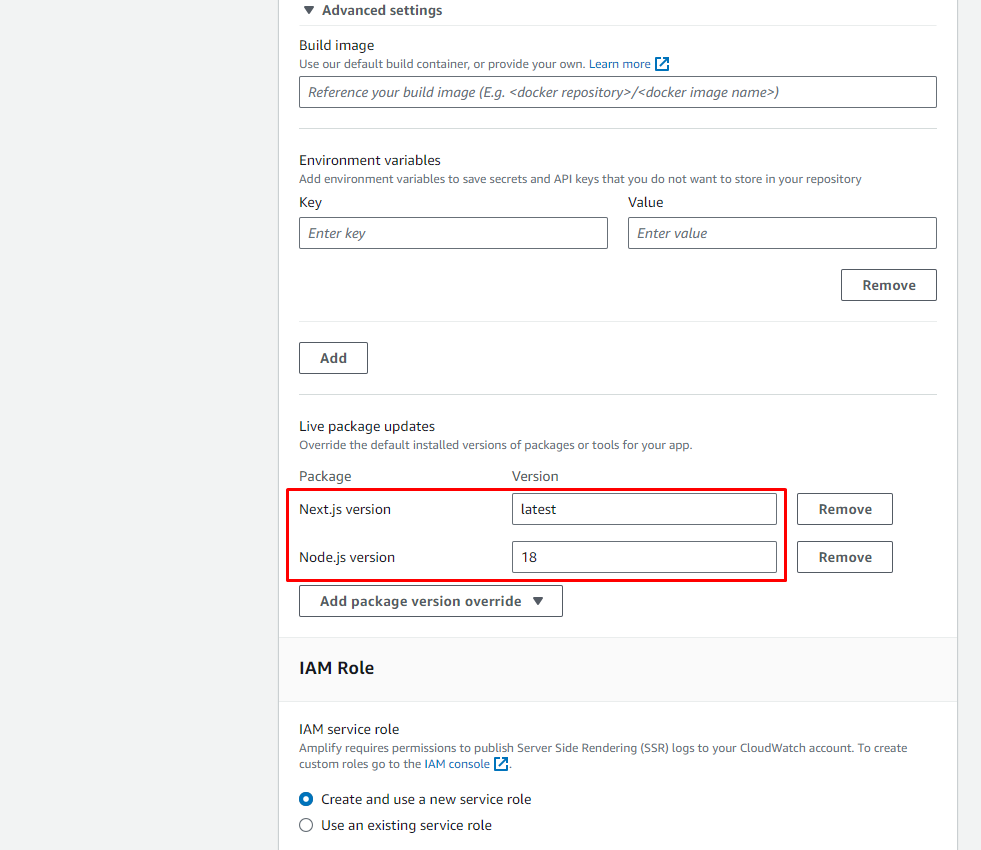 - Build settings: Click Advanced settings, Overide Package version như hình