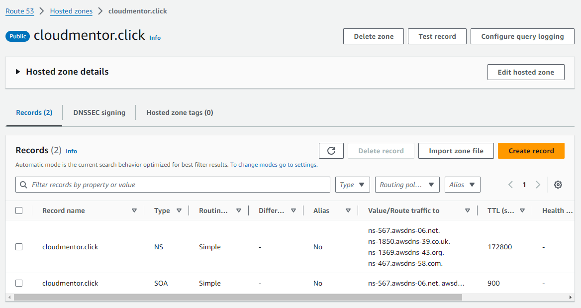 Tiền đề là bạn đã mua domain ở Route 53 (Đã có Public Hosted zones)