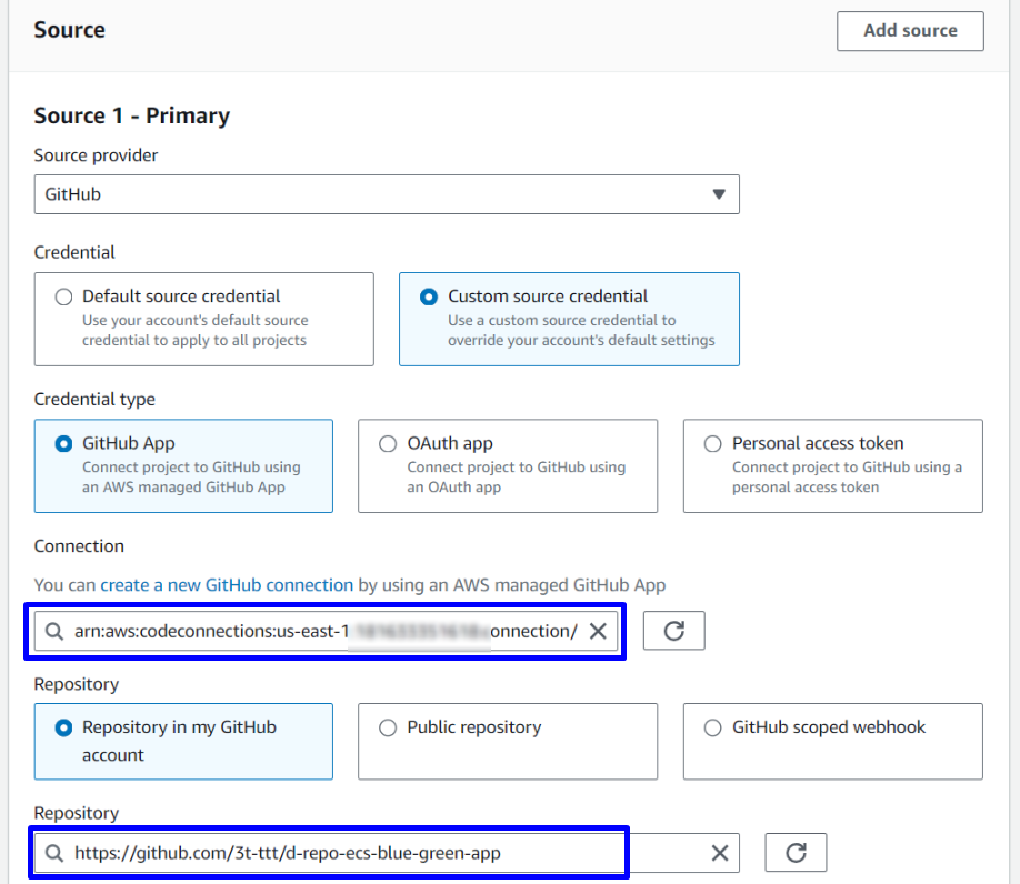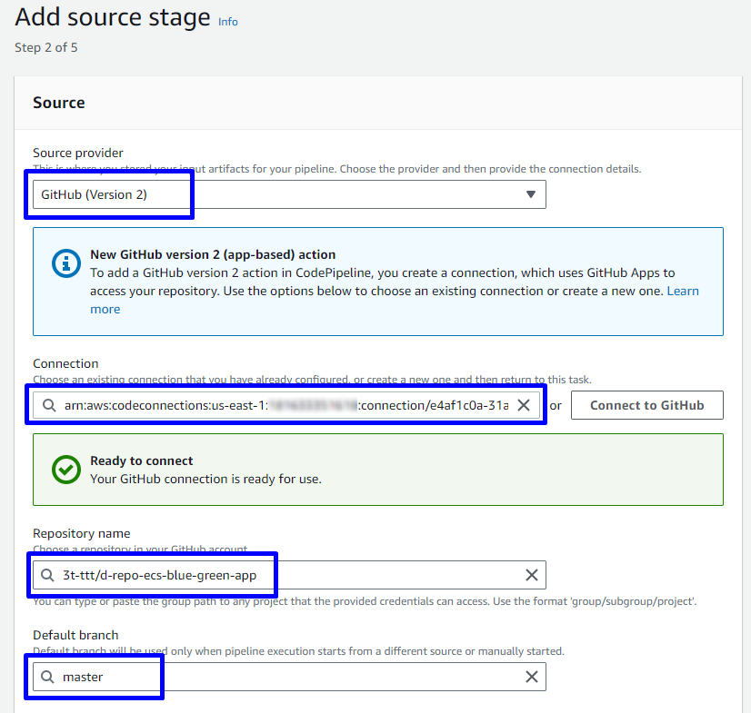 d-repo-ecs-blue-green-app) - Branch name: Chọn branch name ( demo này là