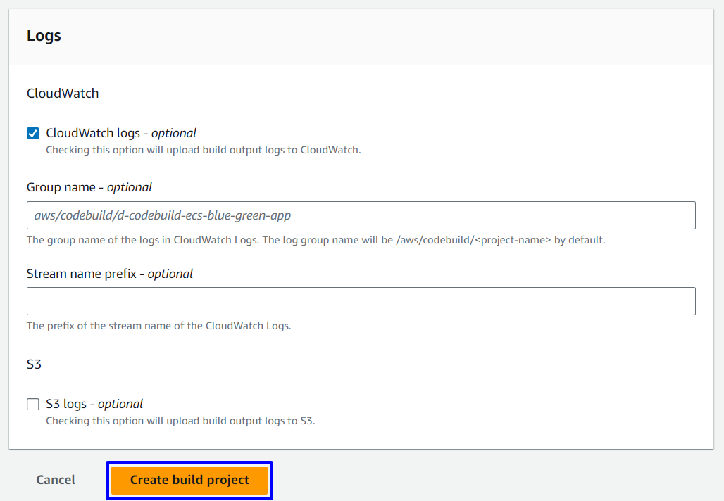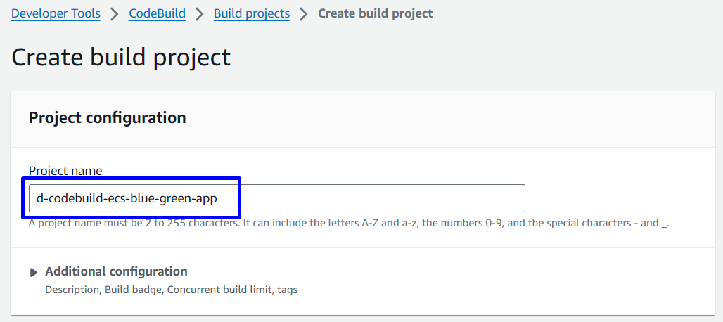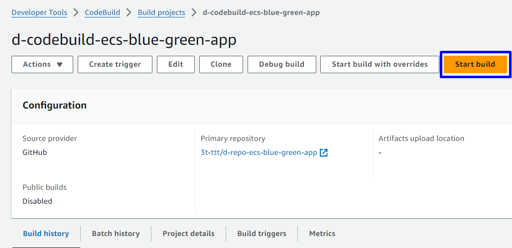 AppECS-d-ecs-blue-green-cluster-d-ecs-service-blue-green-app - Delete build project in CodeBuild: