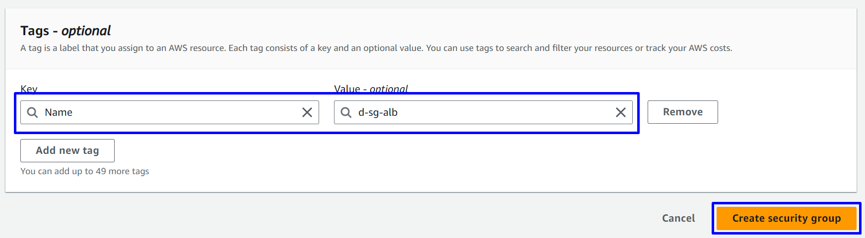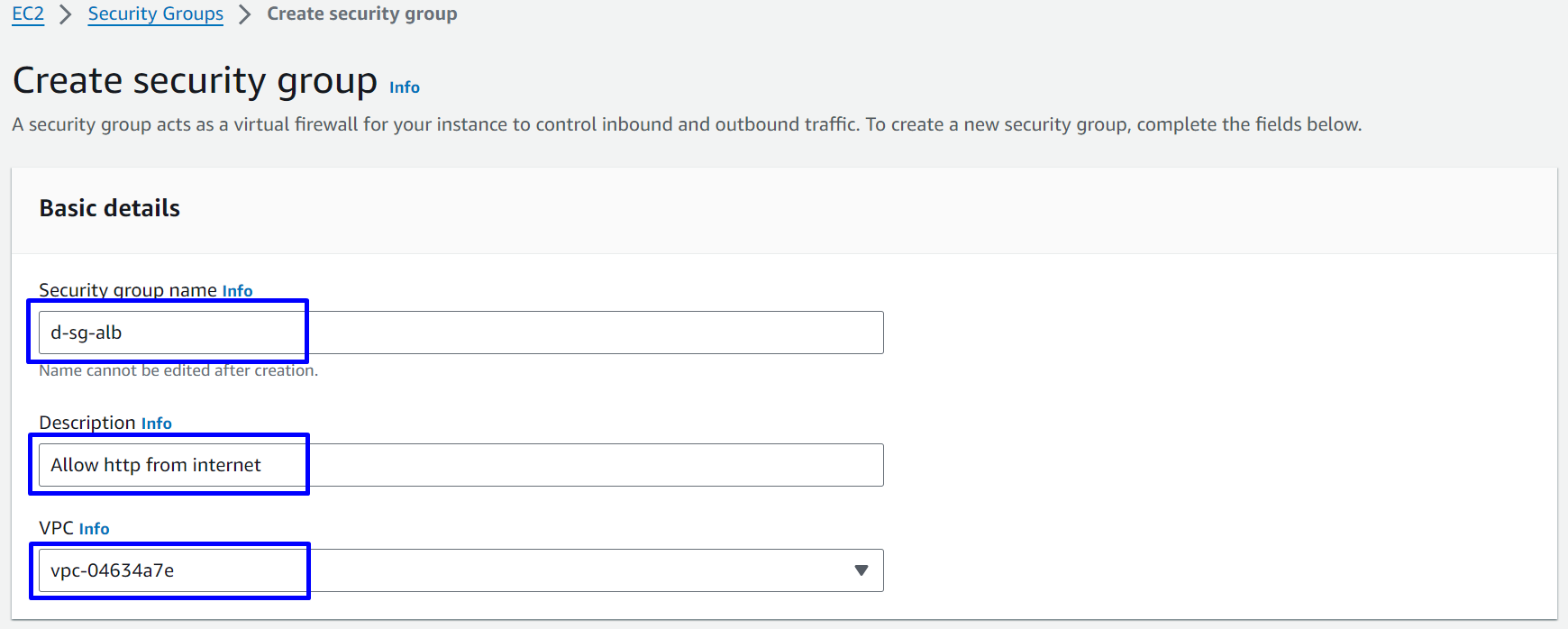 - Security group name: