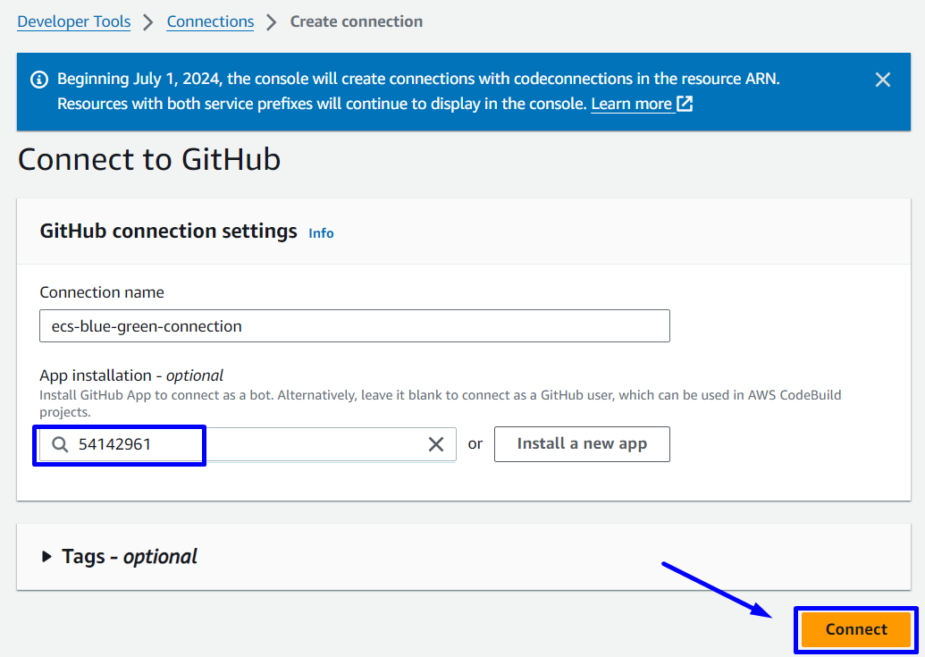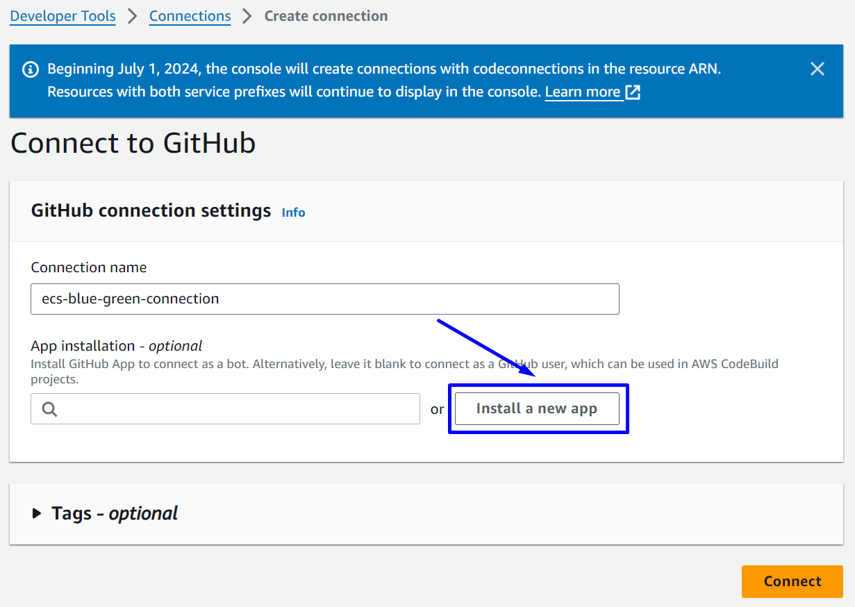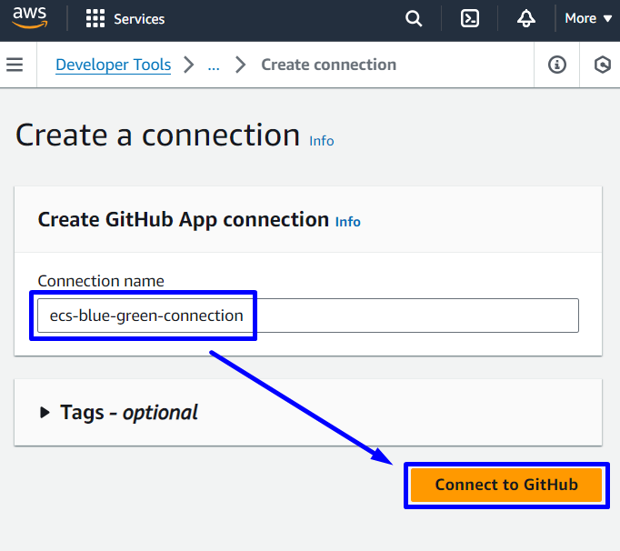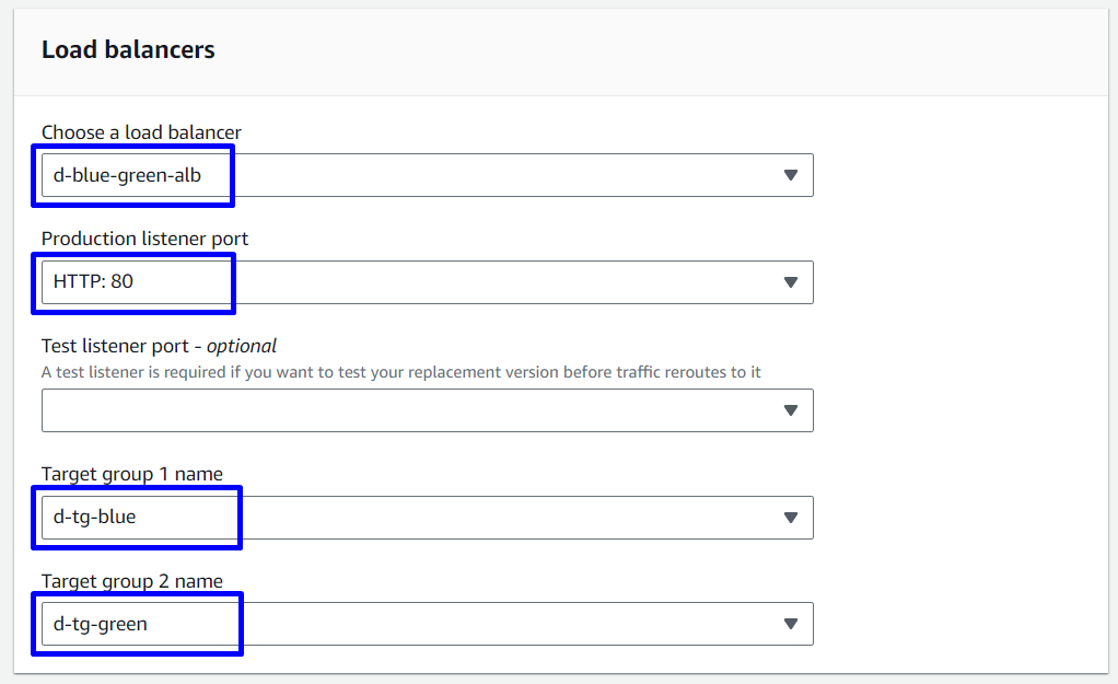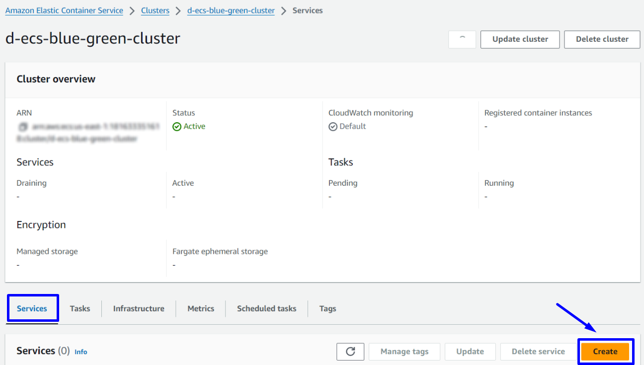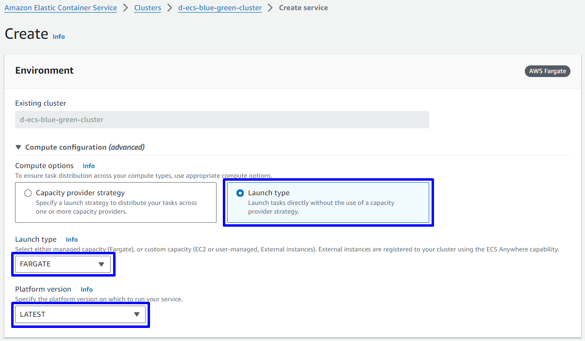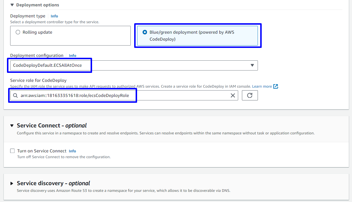 - Create ECS-Fargate with Blue/green deployment type
