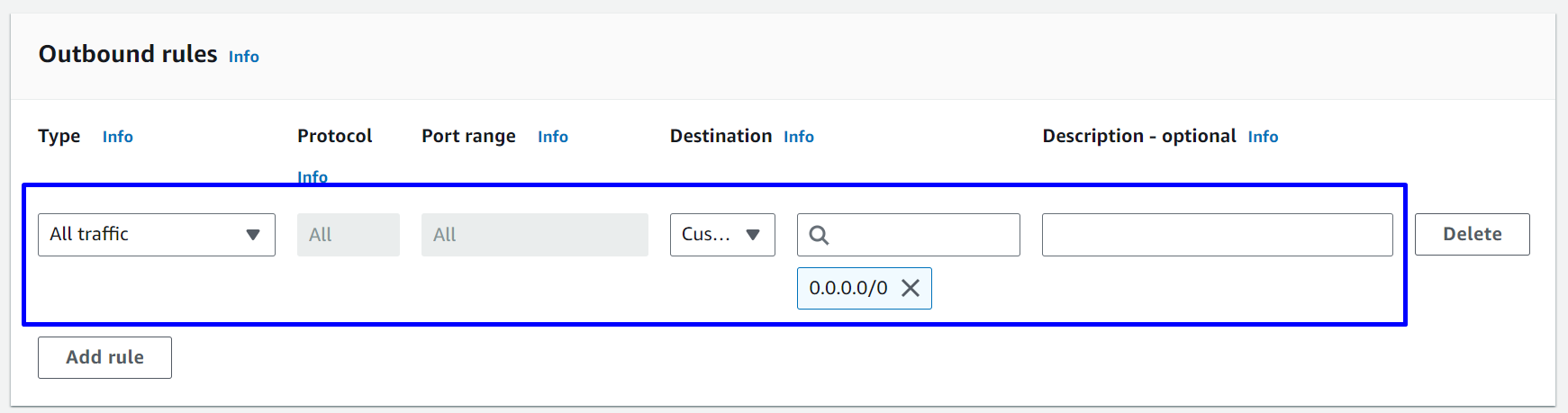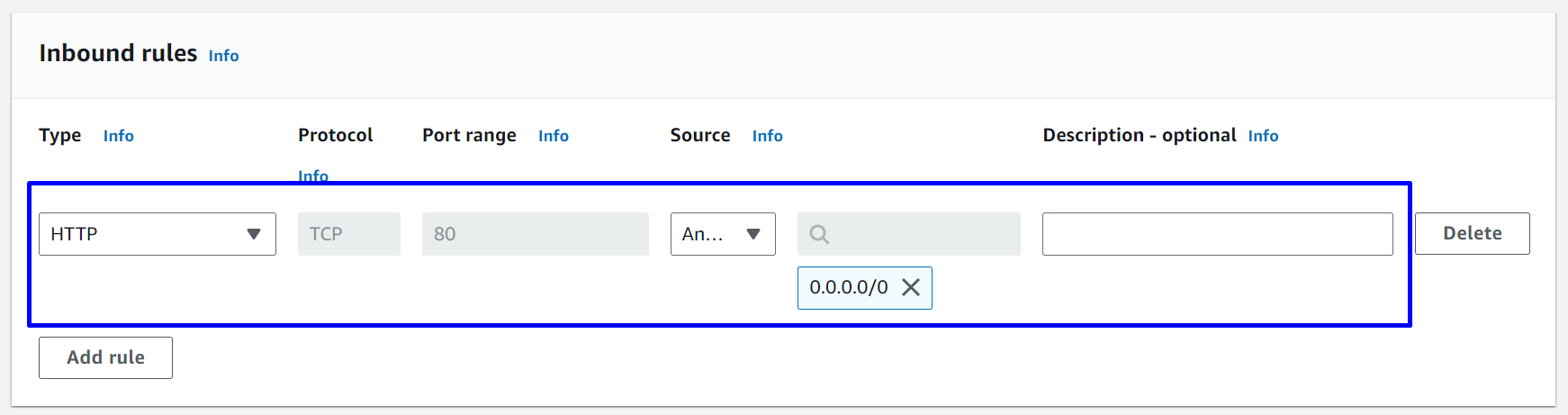 - Inbound rules: Như hình bên dưới