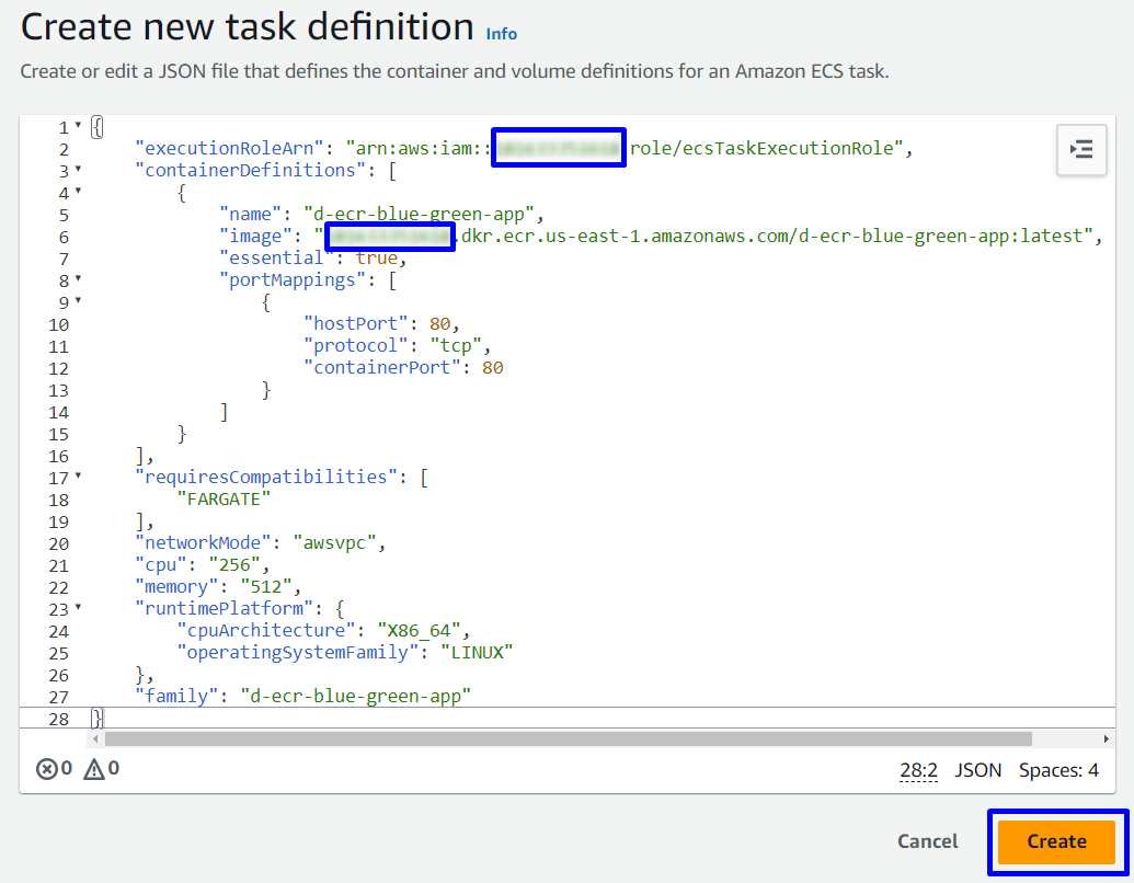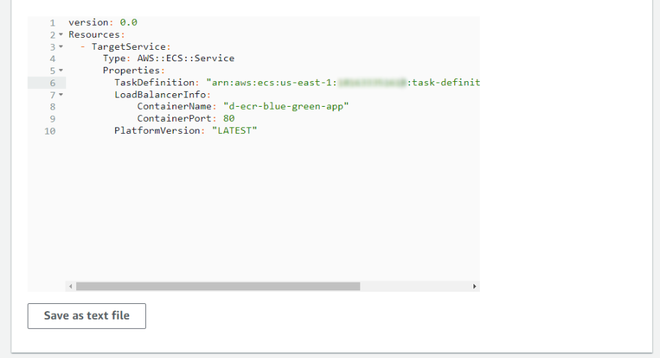 TaskDefinition: "arn:aws:ecs:us-east-1:ACCOUNT-NUMBER:task-definition/d-ecr-blue-green-app:1"