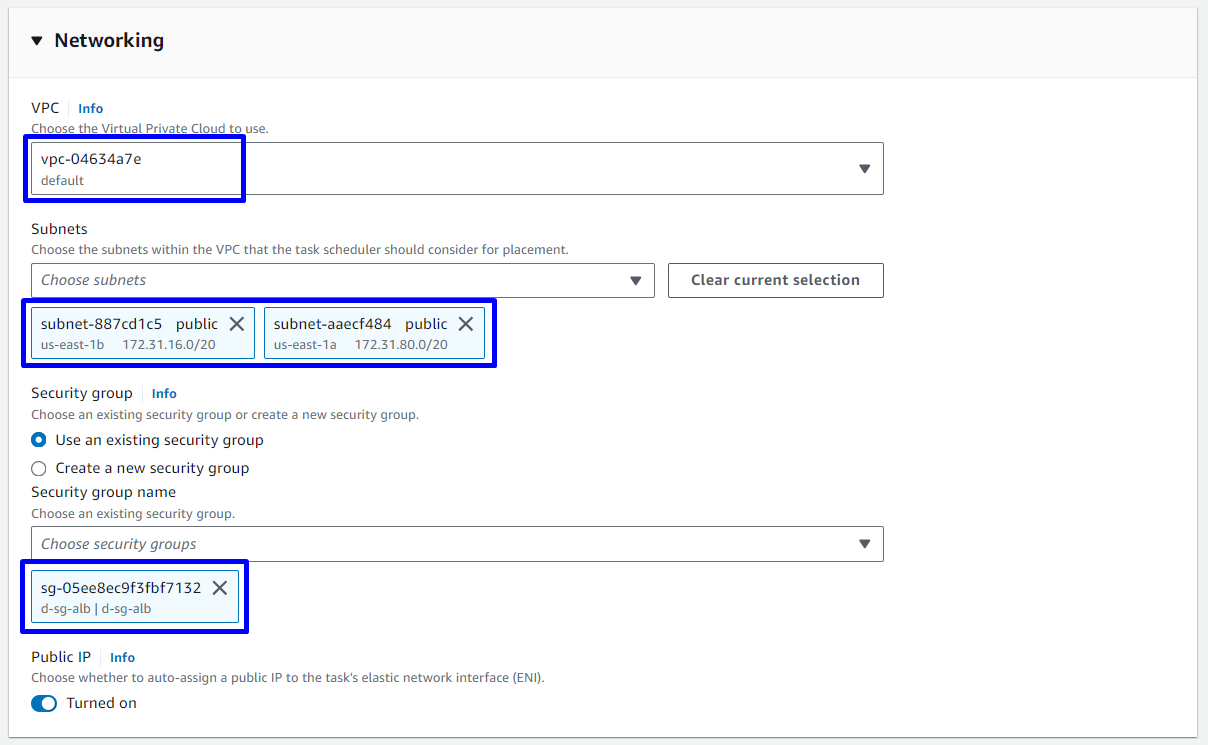 us-east-1avàus-east-1b - Security groups: Chọn