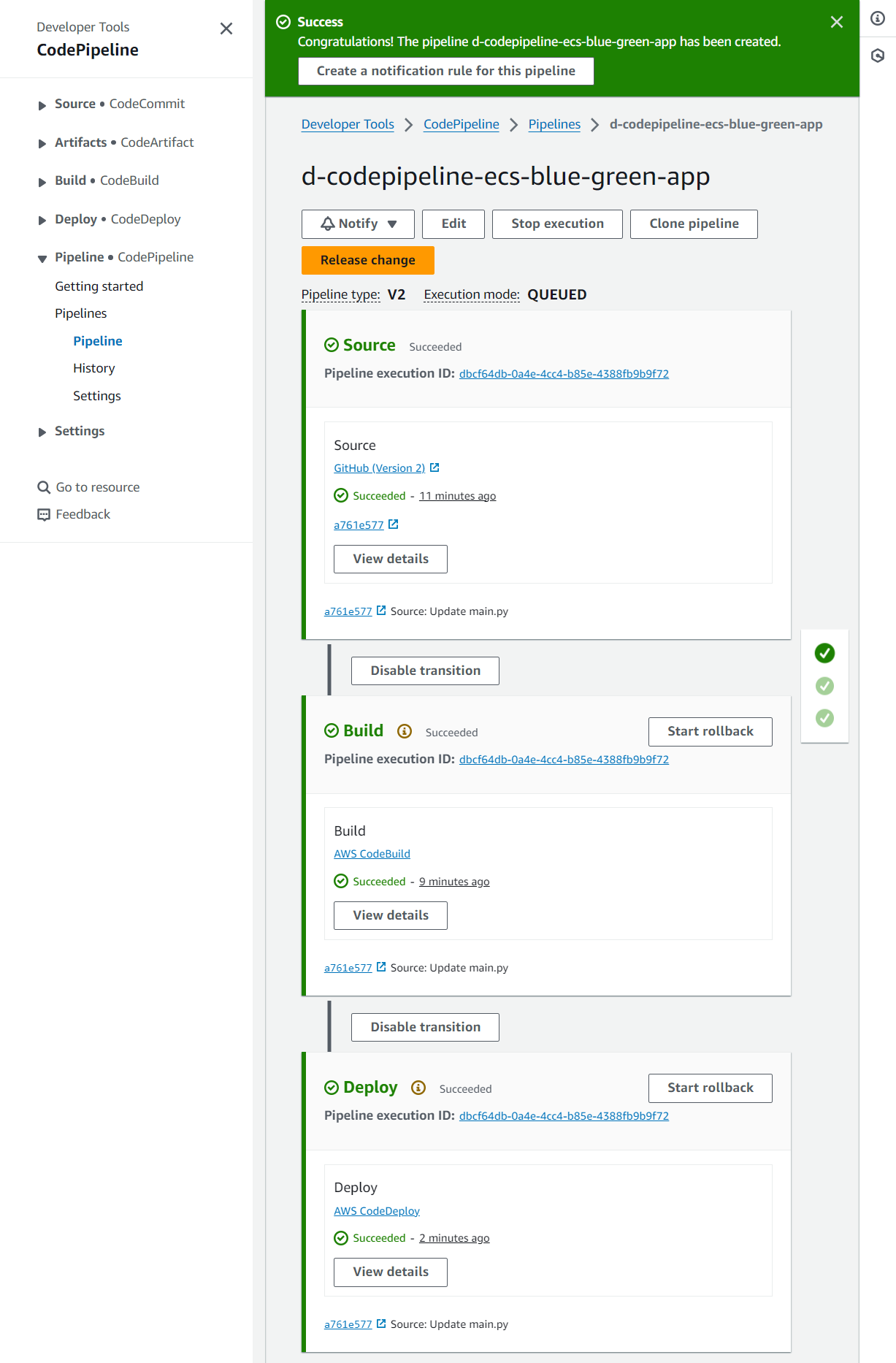 - Delete pipeline from CodePipeline: