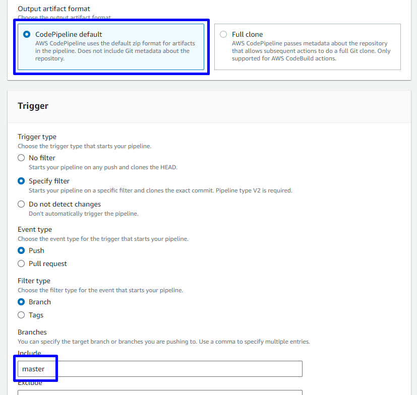 CodePipeline default
