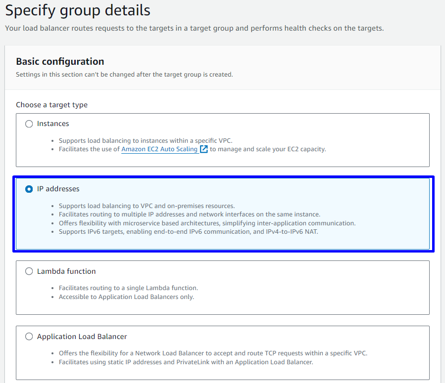 IP addresses - Target group name: