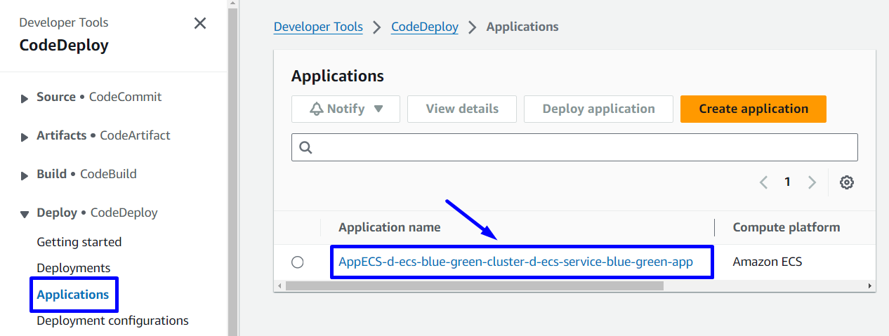 d-codepipeline-ecs-blue-green-app - Delete Application in CodeDeploy: