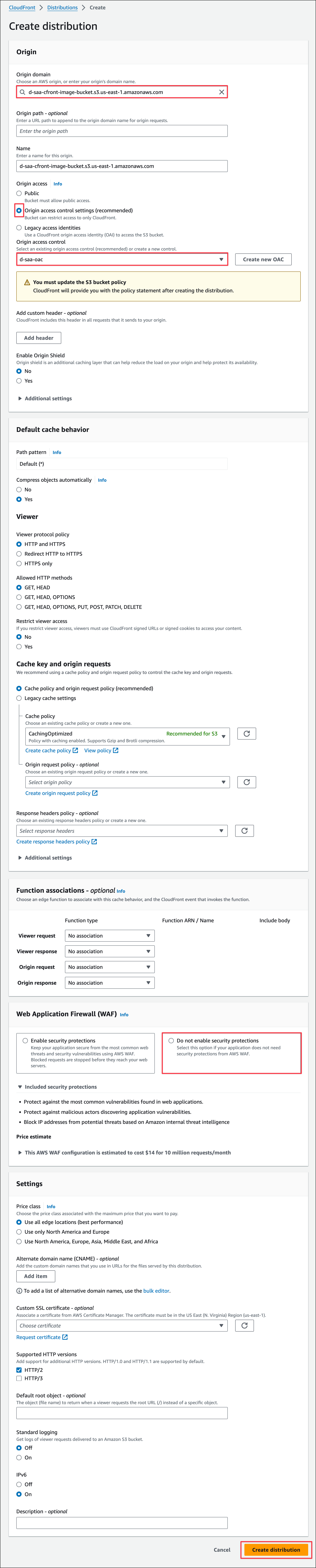 Nhập các thông tin như sau sau đó nhấn Create distribution