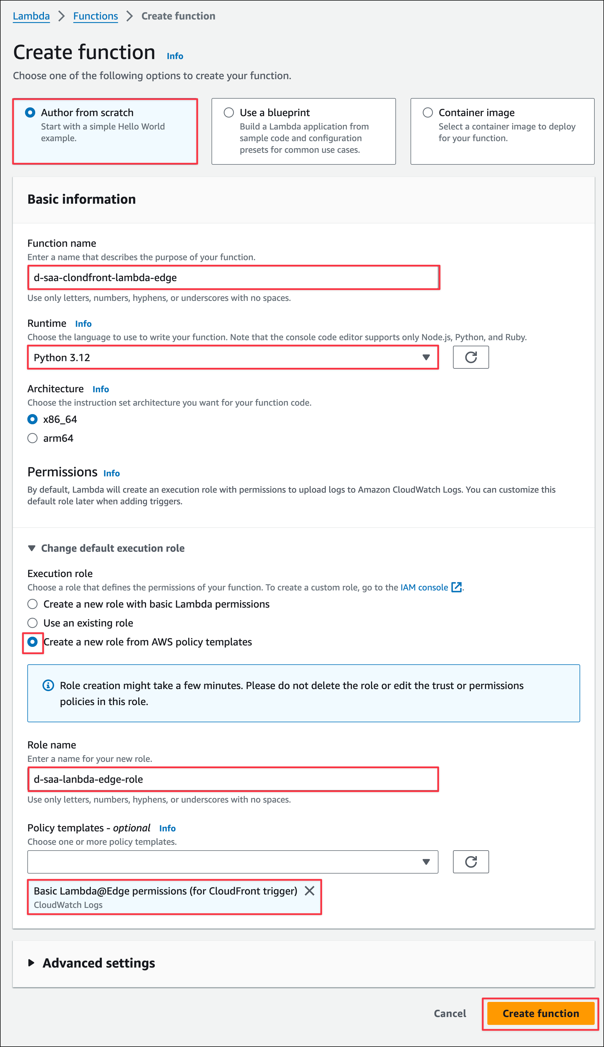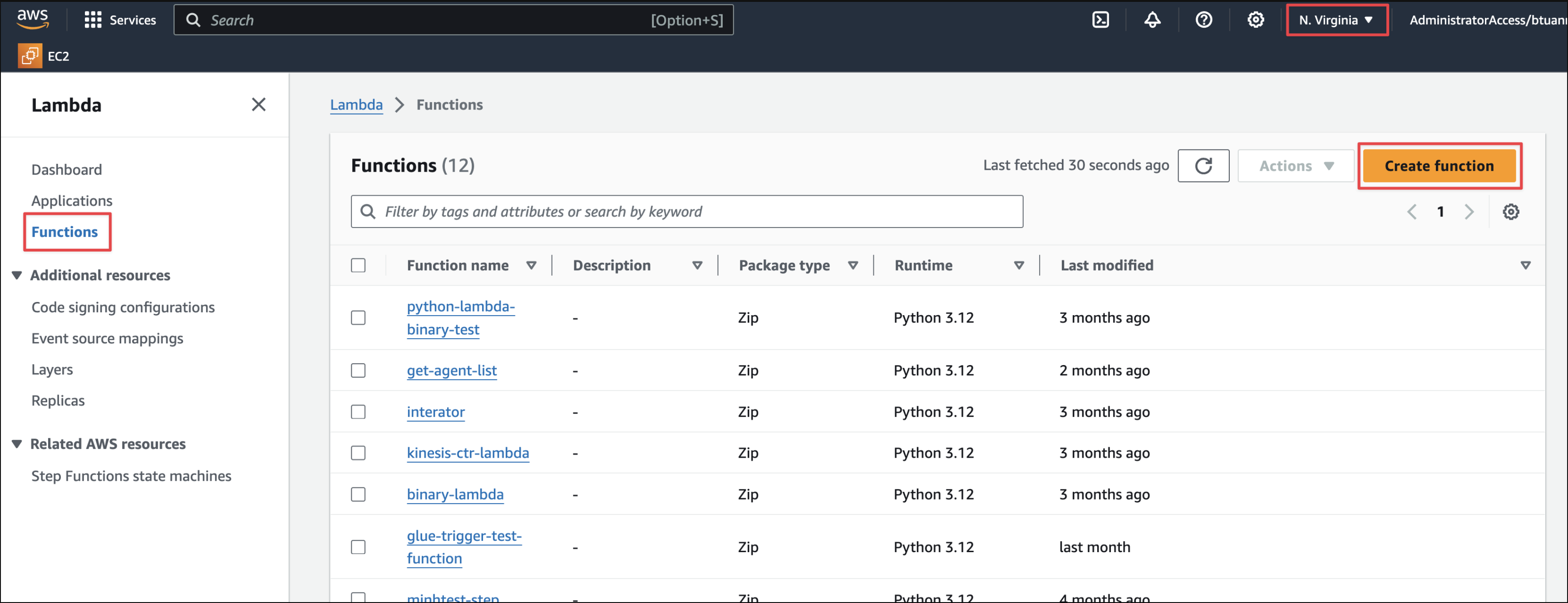 Vào lambda console, lưu ý chọn region us-east-1 (vì lambda@edge bắt buộc phải tạo ở region này), sau đó nhấn Create function