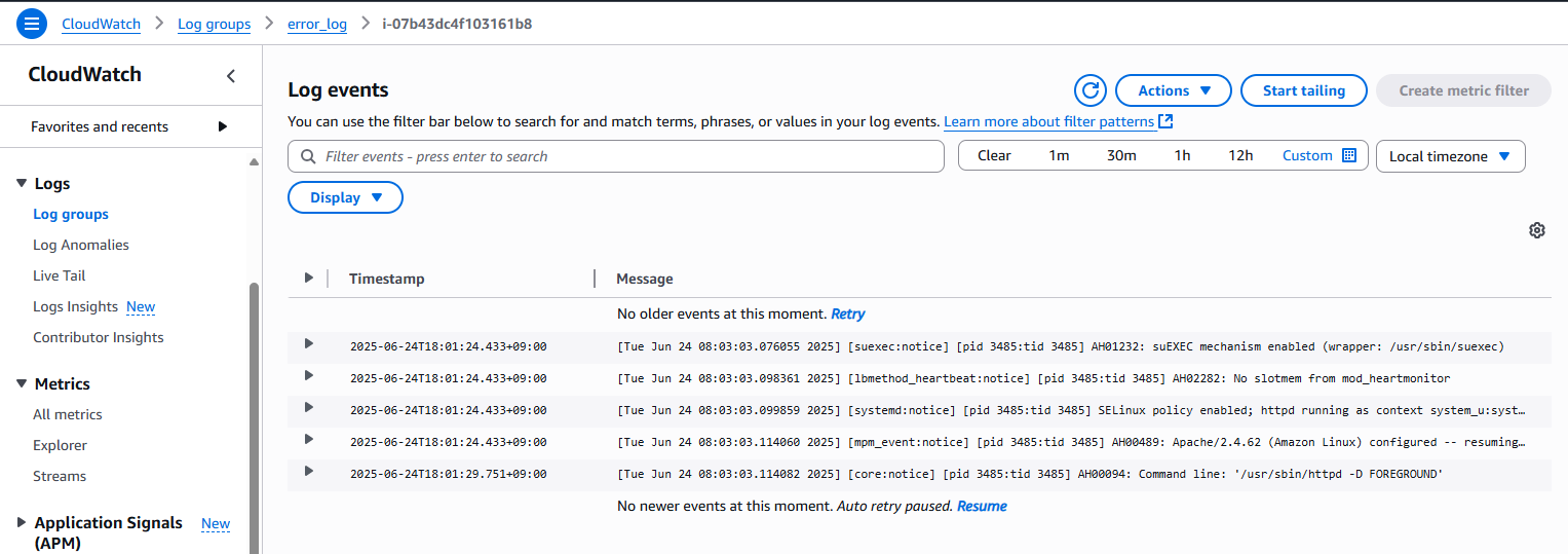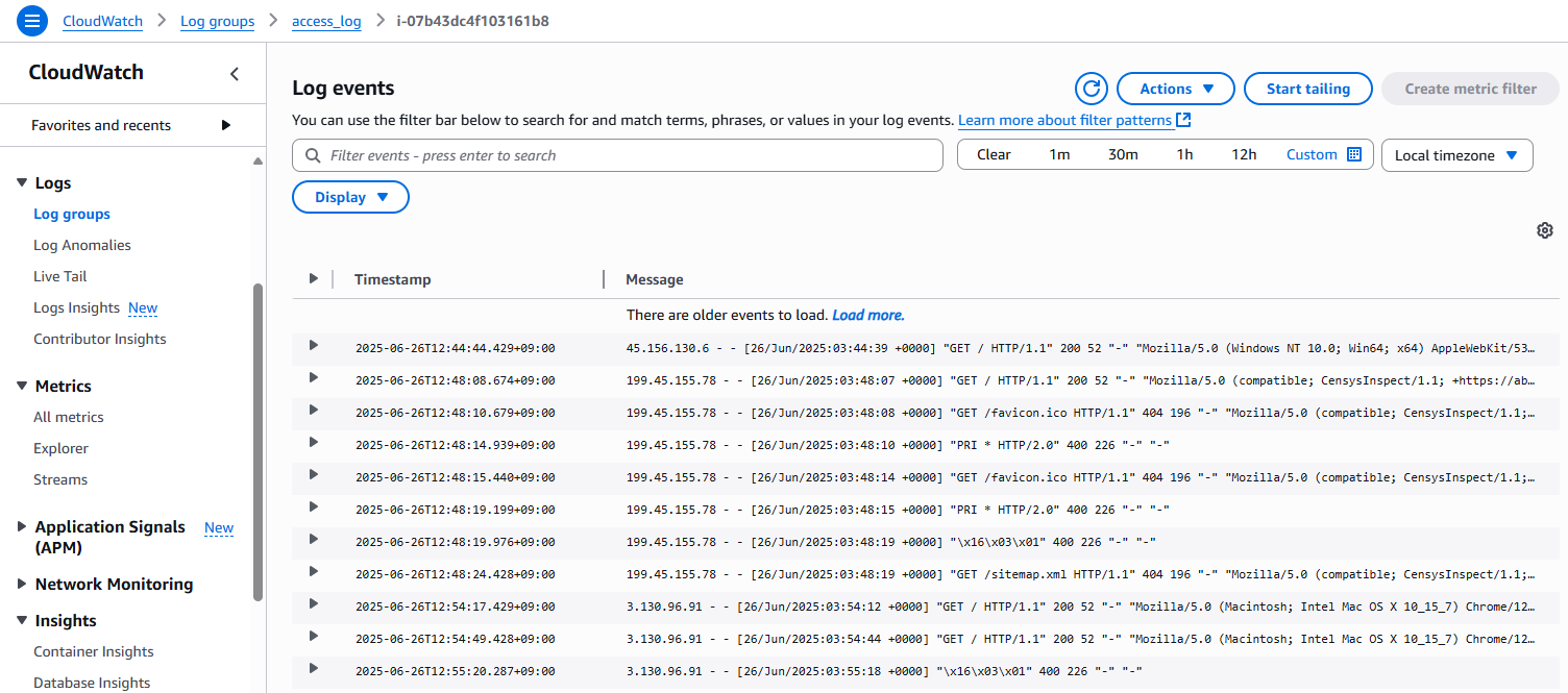 Nội dung trong 2 file log này cũng được gửi lên CloudWatch log