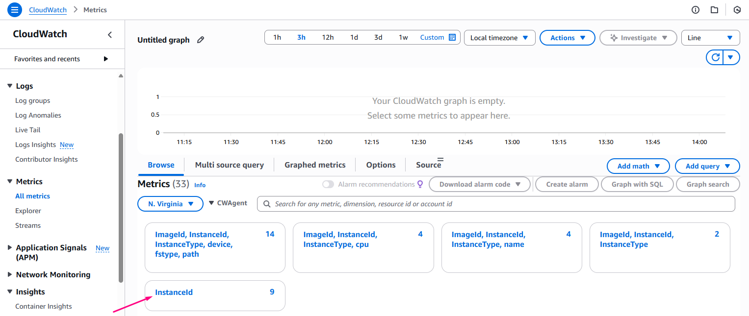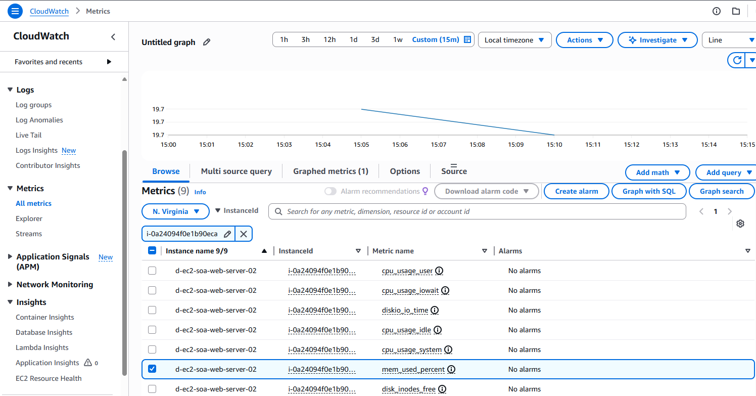 Sau khi khởi động CloudWatch Agent, chúng ta cần xác nhận rằng các metrics đang được thu thập một cách bình thường.