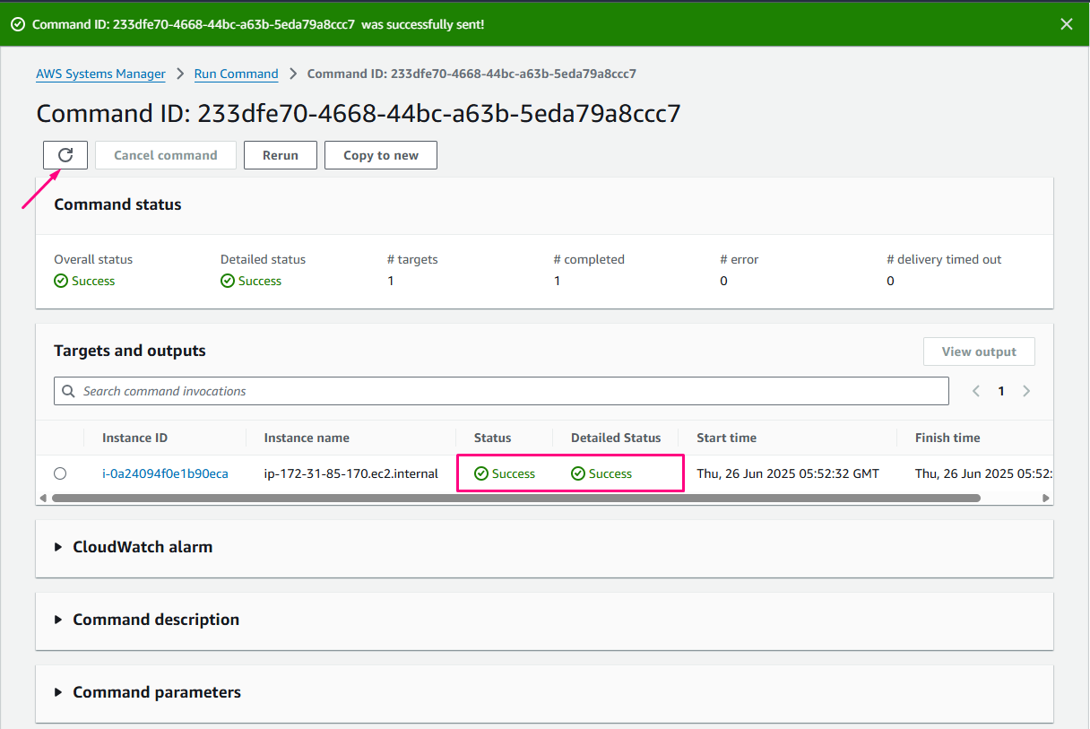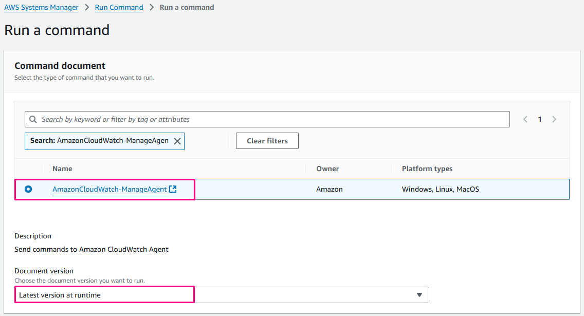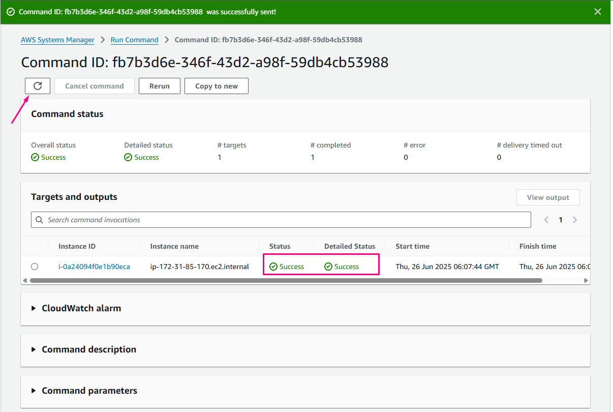 Sau khi cài đặt xong thì tiến hành khởi động Cloudwatch Agent (cũng sử dụng SSM Command)