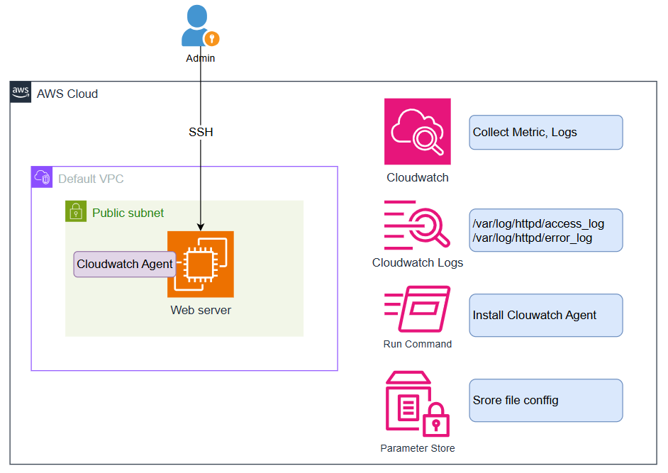Các ứng dụng chạy trên EC2 mặc định cũng ghi log tại chính server EC2, vì vậy nếu muốn thực hiện gửi log đến CloudWatch cho các mục đích liên kết khác (search, filter, Export đến S3 vv) thì chúng ta cũng cần đến CloudWatch Agent.