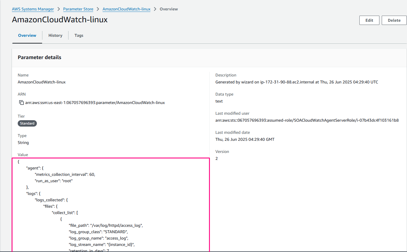 Successfully put config to parameter store AmazonCloudWatch-linux.