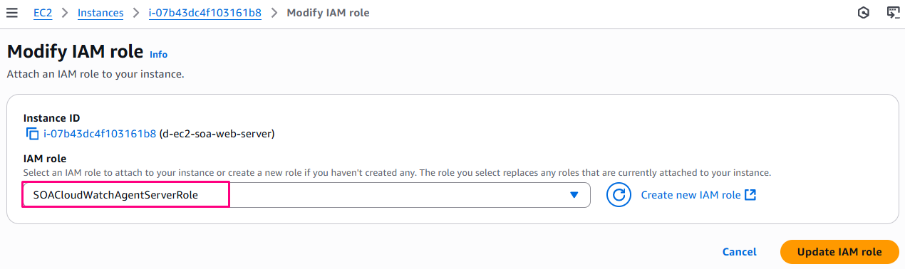 d-ec2-soa-web-server-02và gắn Role như bước 1,2 phía trên - Cài CloudWatch Agent: Command line