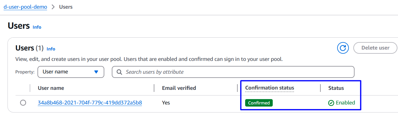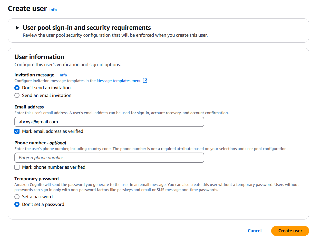 Vào d-user-pool-demo đã tạo ở bước 2.1 -> Users -> Click Create user