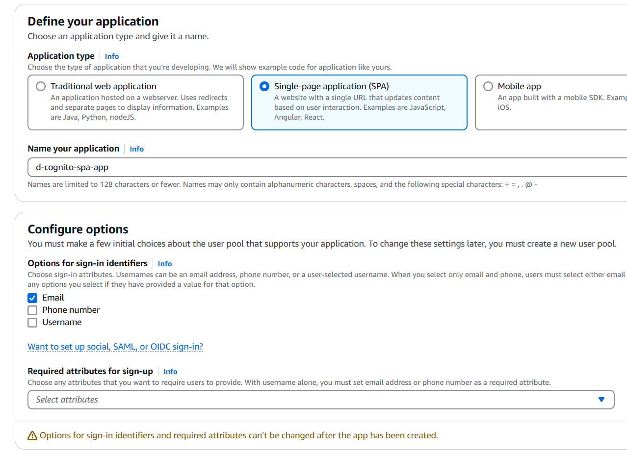 - Tạo Cognito User Pool để quản lý danh tính người dùng và thực hiện xác thực.