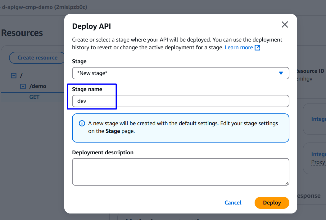 Tại Resources /demo-> Method GET-> Chọn tab Method request -> Click Edit
