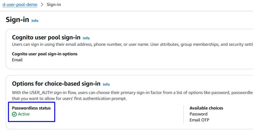Đã config xong tính năng đăng nhập Passwordless dùng Email OTP để xác thực.