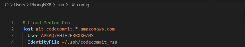 Tham khảo Setup steps for SSH connections to AWS CodeCommit repositories on Windows