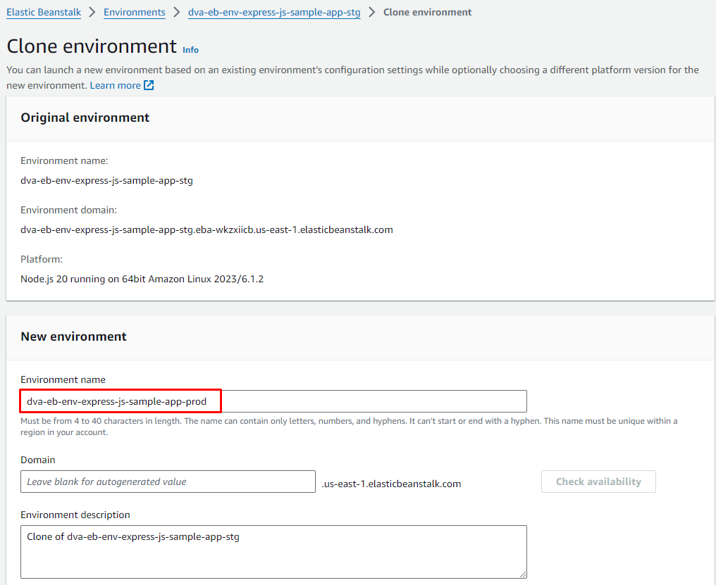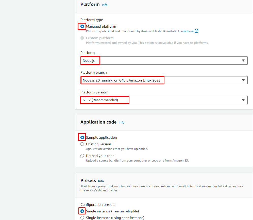Nodejs.20 running on 64bit Amazon Linux 2023 - Platform version: