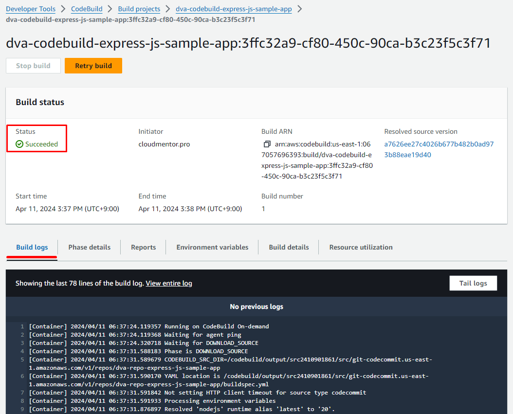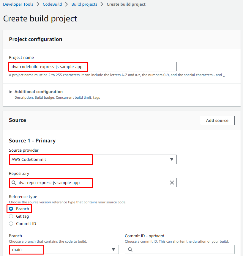 dva-codebuild-express-js-sample-app - Source 1 - Primary