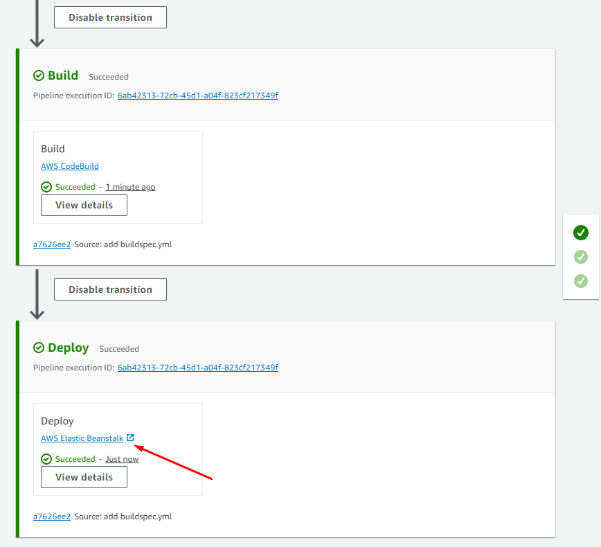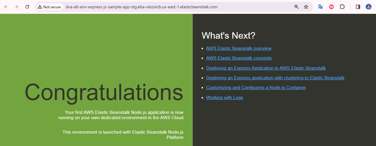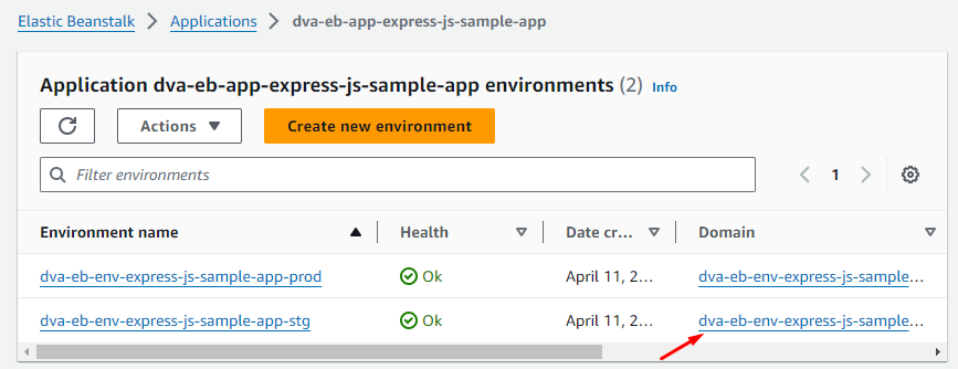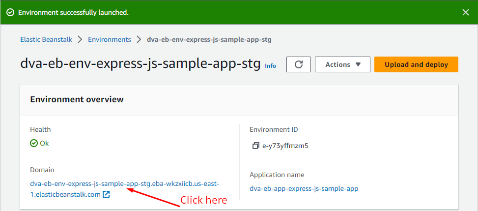 Đến khi pipeline thành công, Mở Elastic Beanstalk và access domain môi trường staging